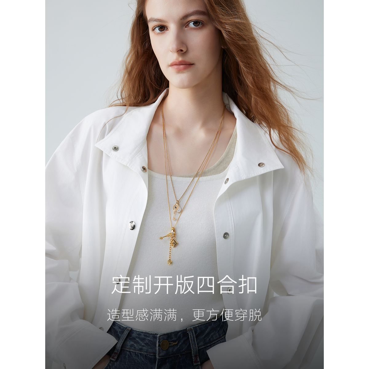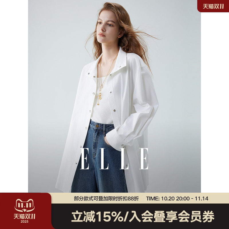 ELLE法式廓形衬衫式外套女2025秋季新款纯棉高级感时髦休闲上衣