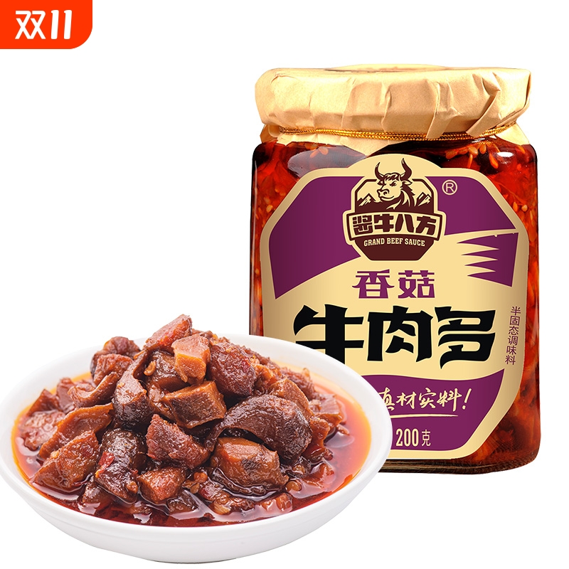 吉香居 酱牛八方牛肉酱 香菇牛肉多200g/瓶 拌面酱下饭酱拌饭酱
