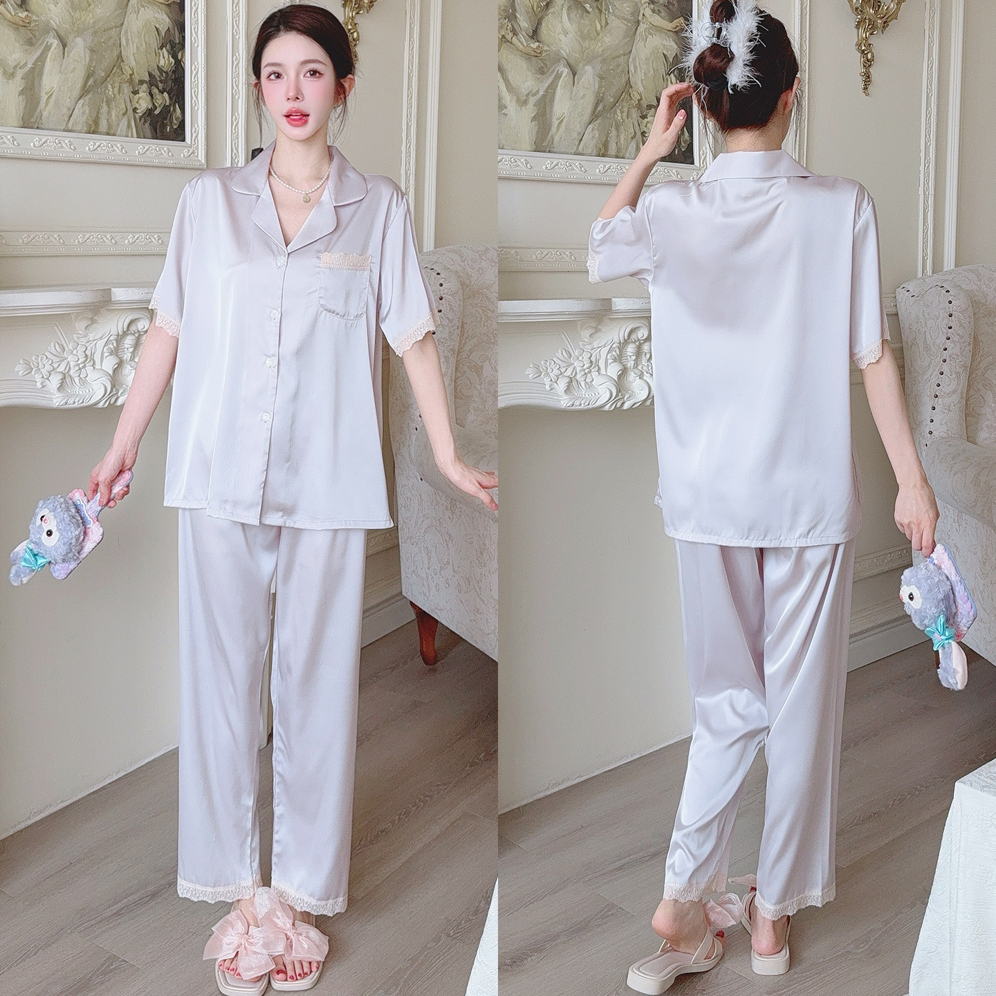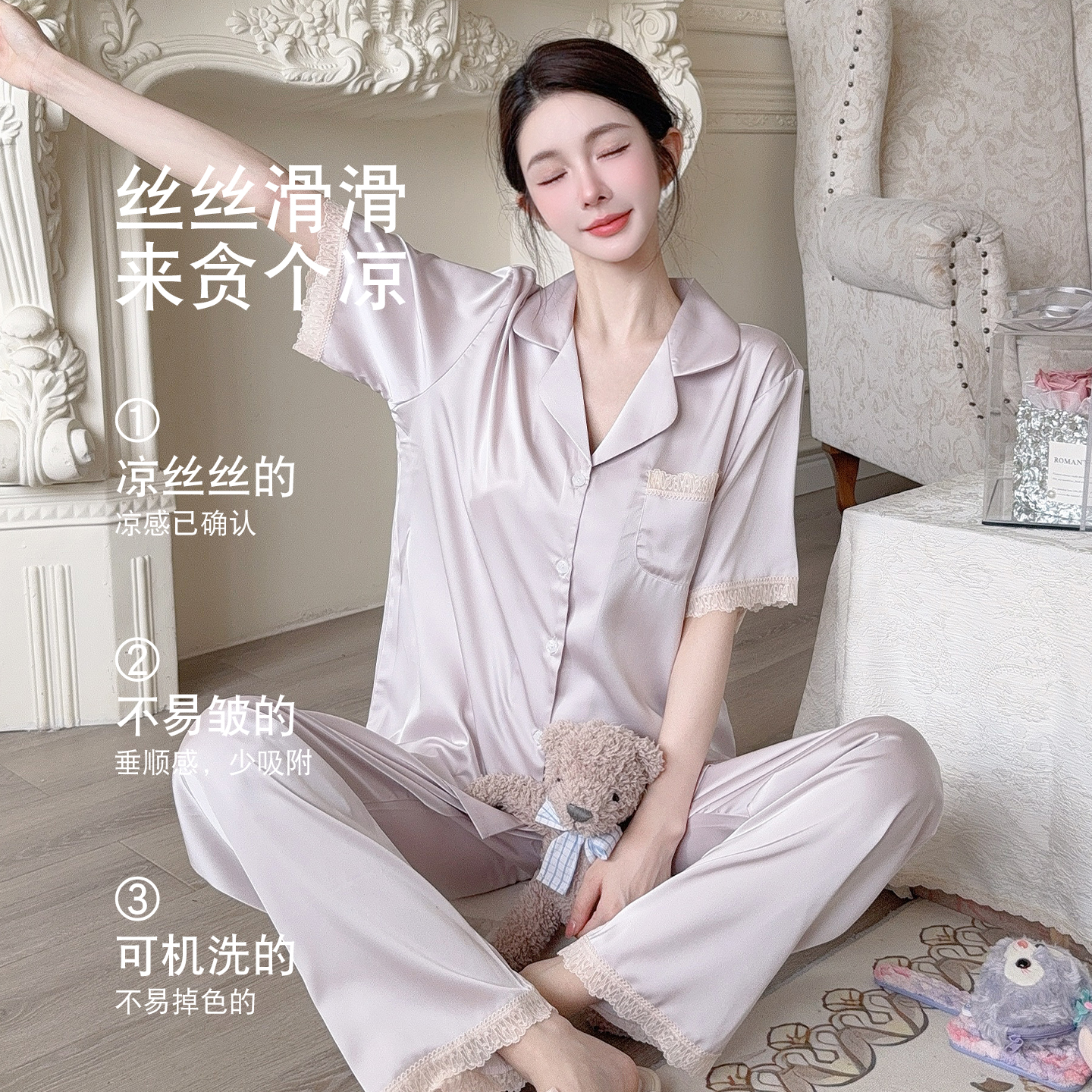 乐姿梦宅度假天缎面冰丝凉感女家居服短袖长裤套装睡衣少女25夏季