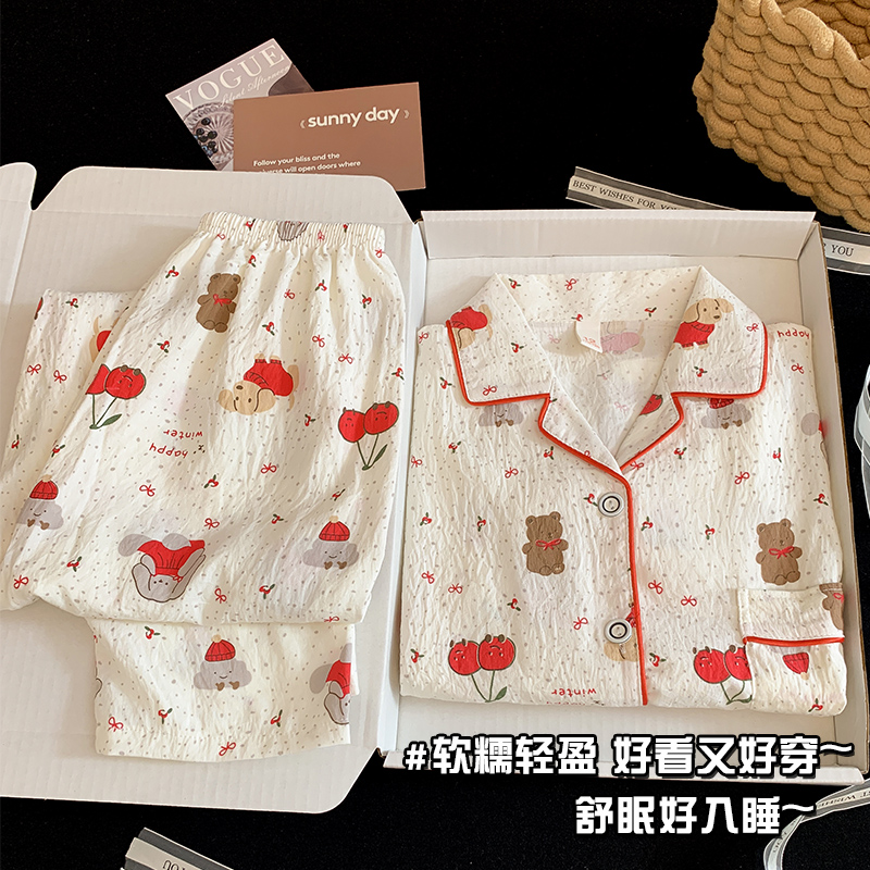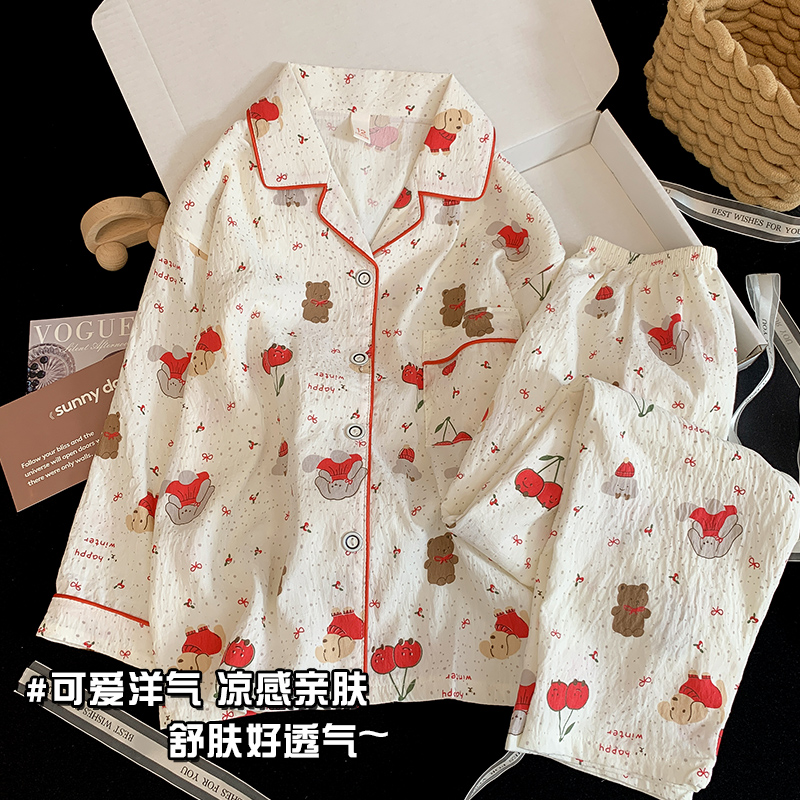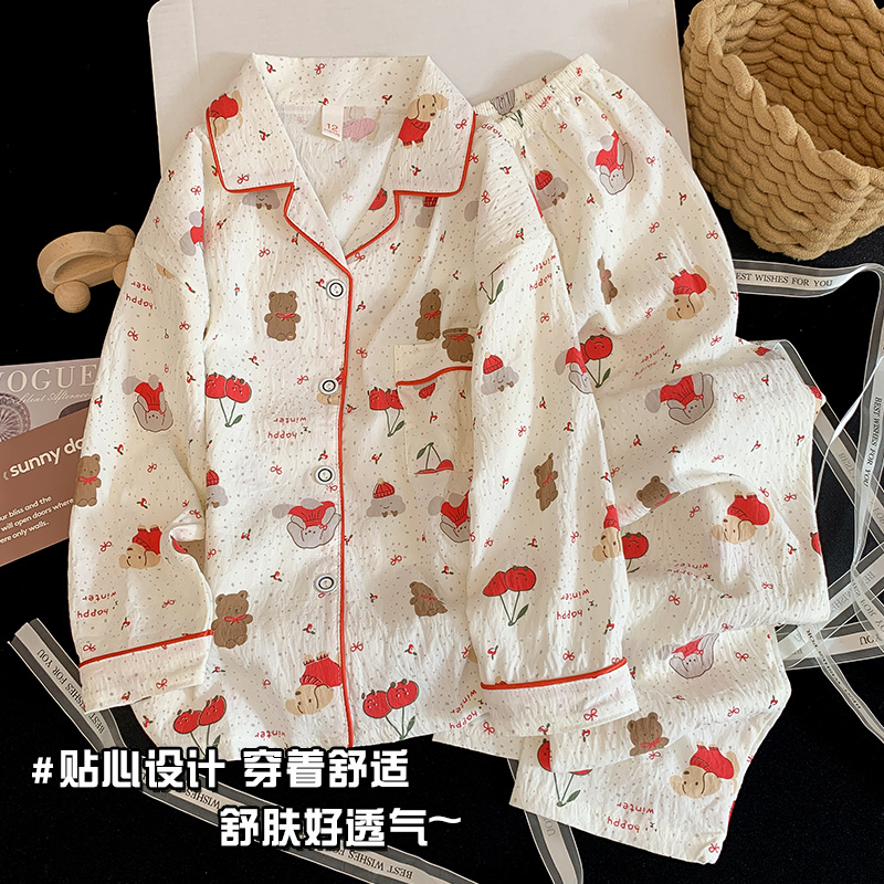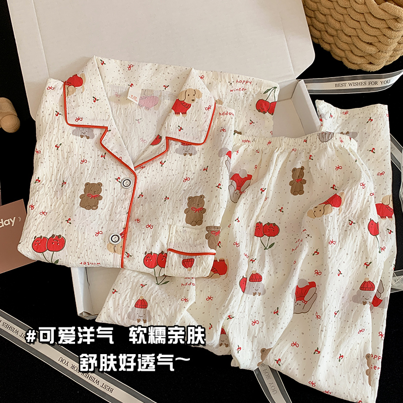 2025春秋季新款女童卡通樱桃小狗睡衣长袖儿童中大童女家居服套装