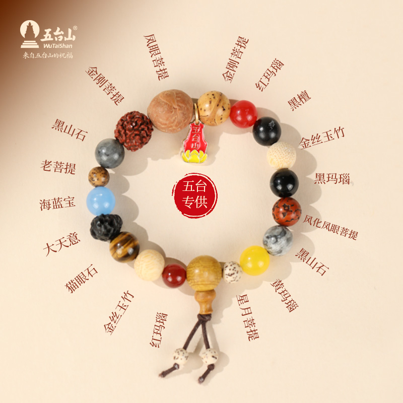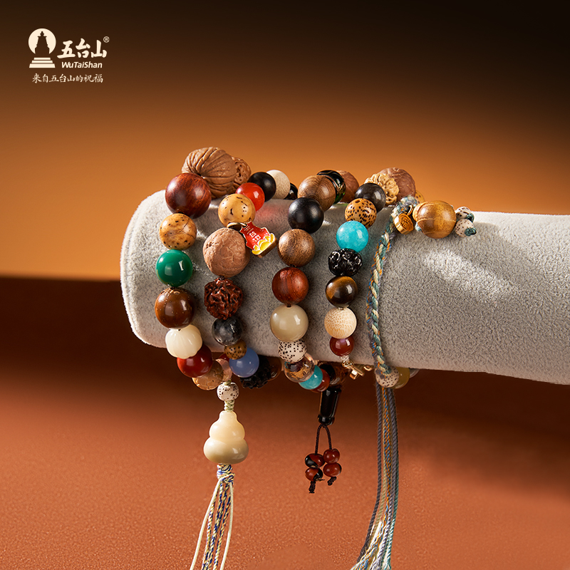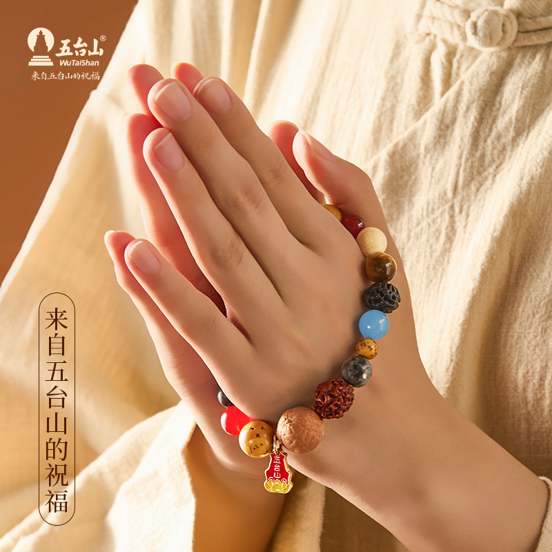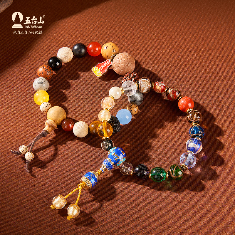 五台山多宝十八籽菩提手串18子香灰琉璃金箔琉璃转运手链毕业礼物