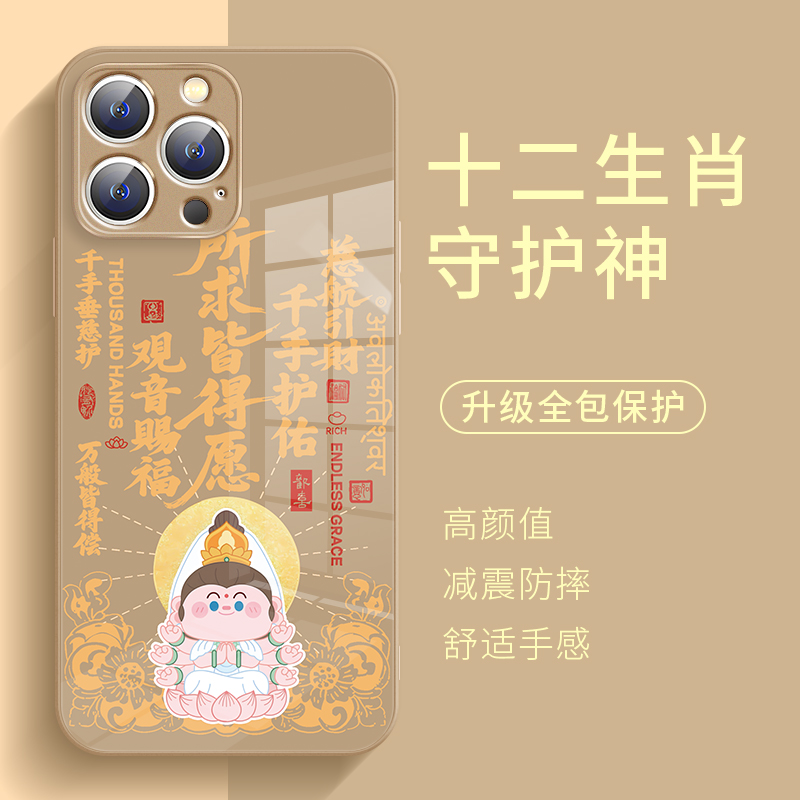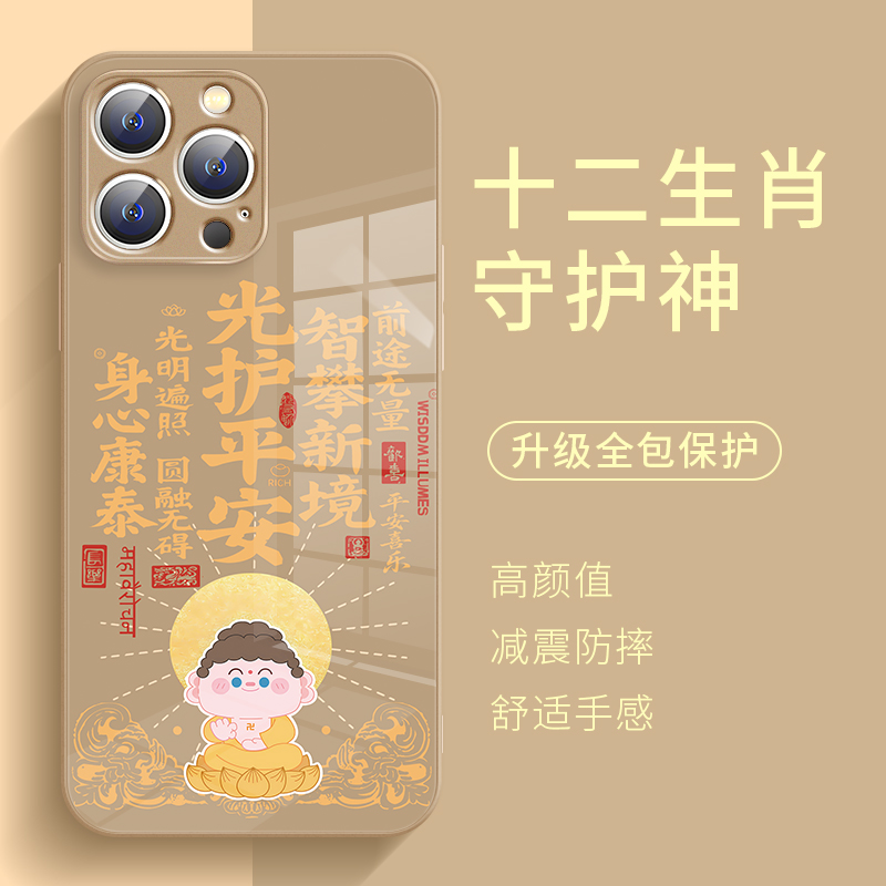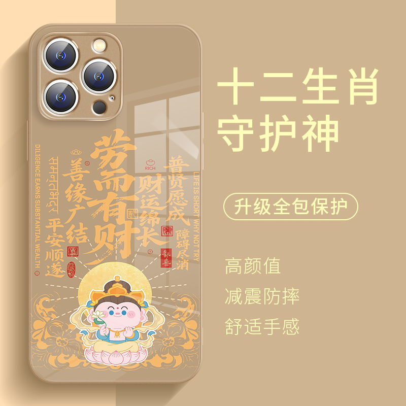 适用于苹果16promax手机壳17air十二生肖守护神iphone15plus高级感17pro中国风14pro正能量13玻璃12全包11pm