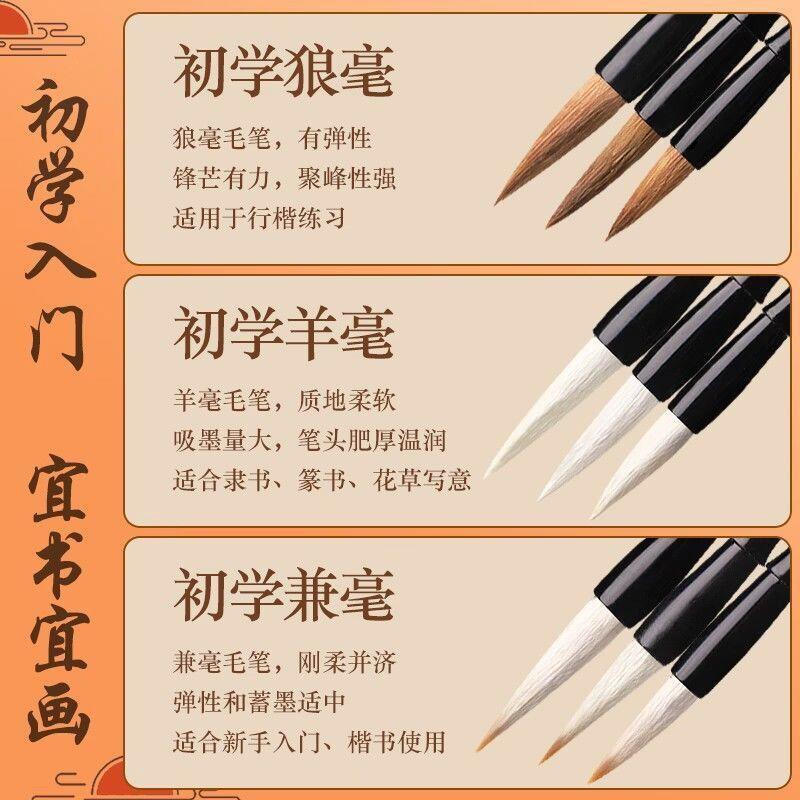 兼毫毛笔 适用于书法入门练习 学生书法培训 发一套大中小号三支