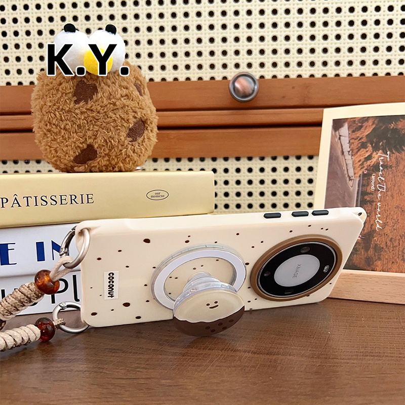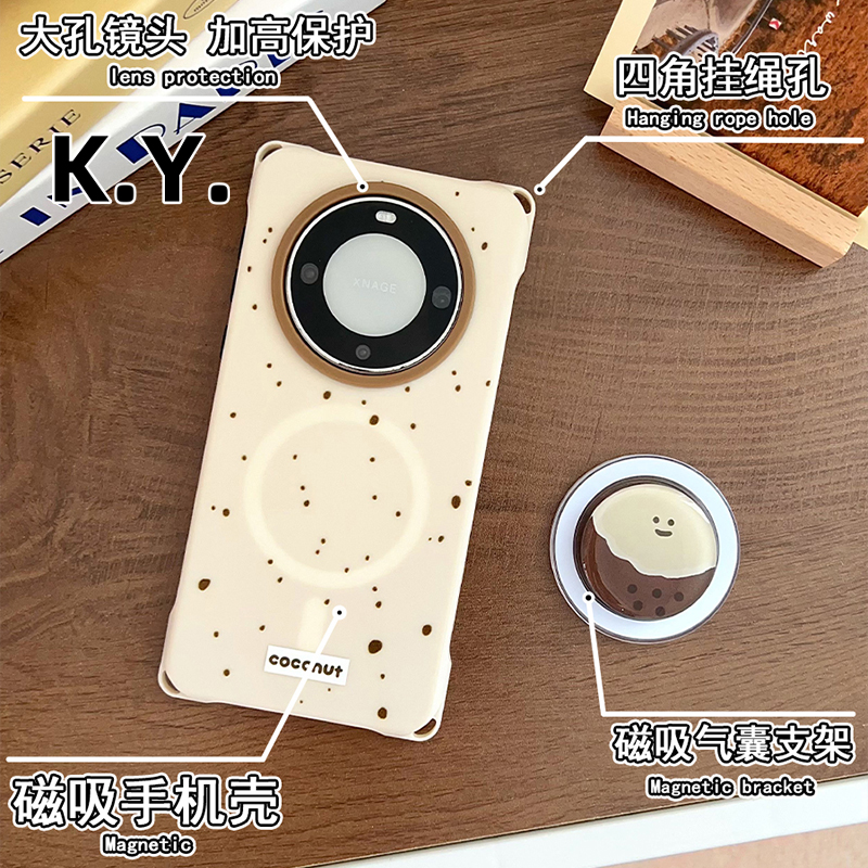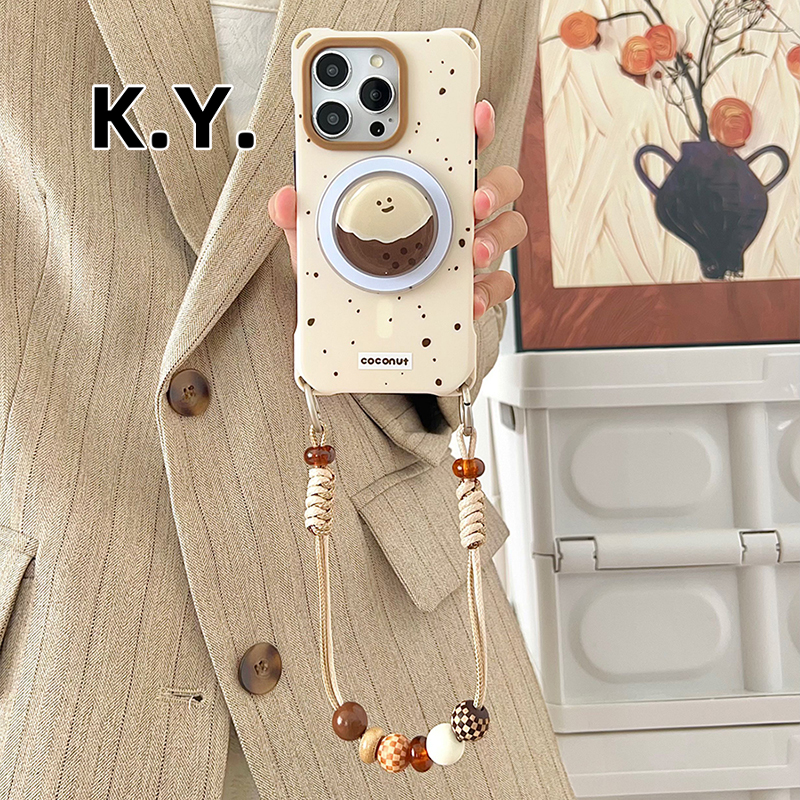 简约笑脸椰子磁吸支架手机壳带挂绳适用于华为mate60/70苹果15/16手腕斜挎14/15ultra四角开孔防摔findx7/8