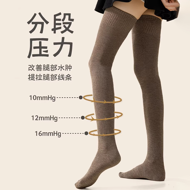 黑色长筒袜过膝袜子女秋冬季大腿袜纯棉压力显瘦长袜护膝防滑保暖