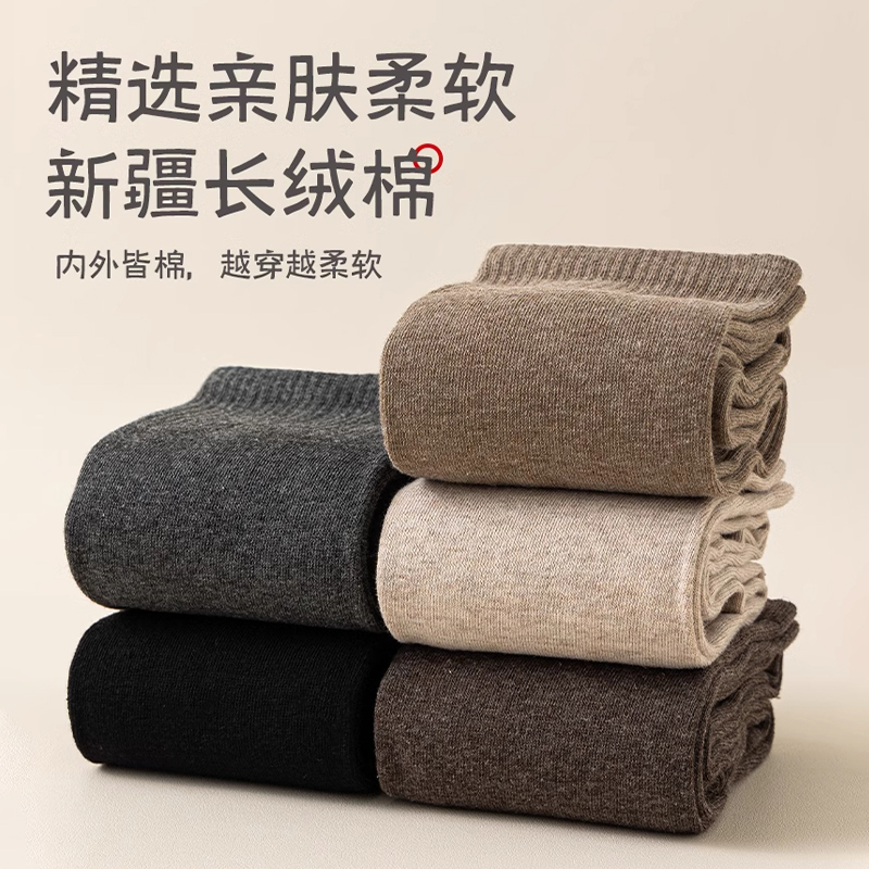 5双装 往往精梳棉质3A抗菌女士袜子中长筒袜纯色休闲男袜秋冬季