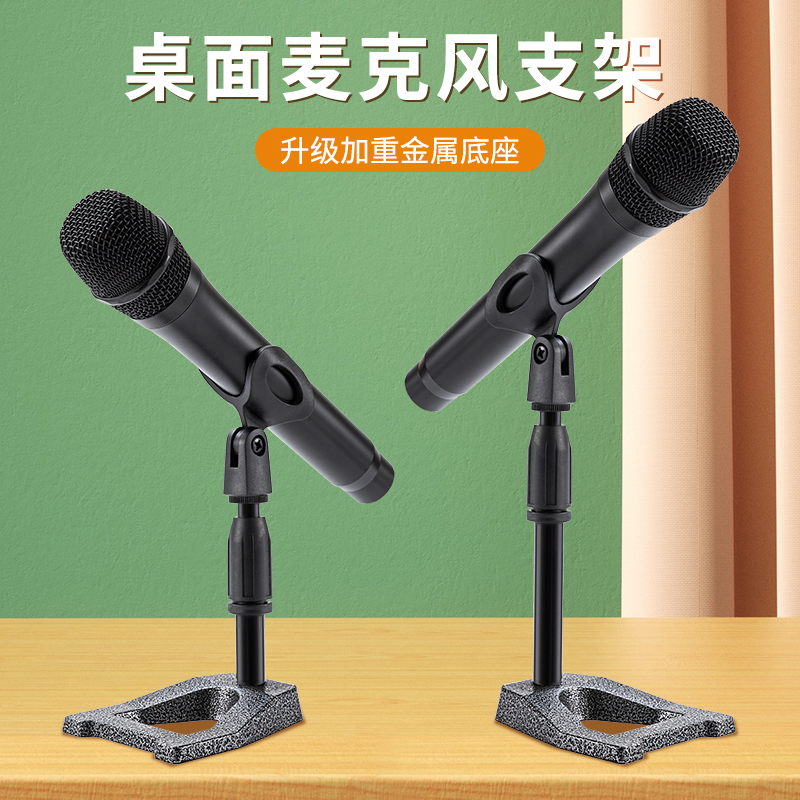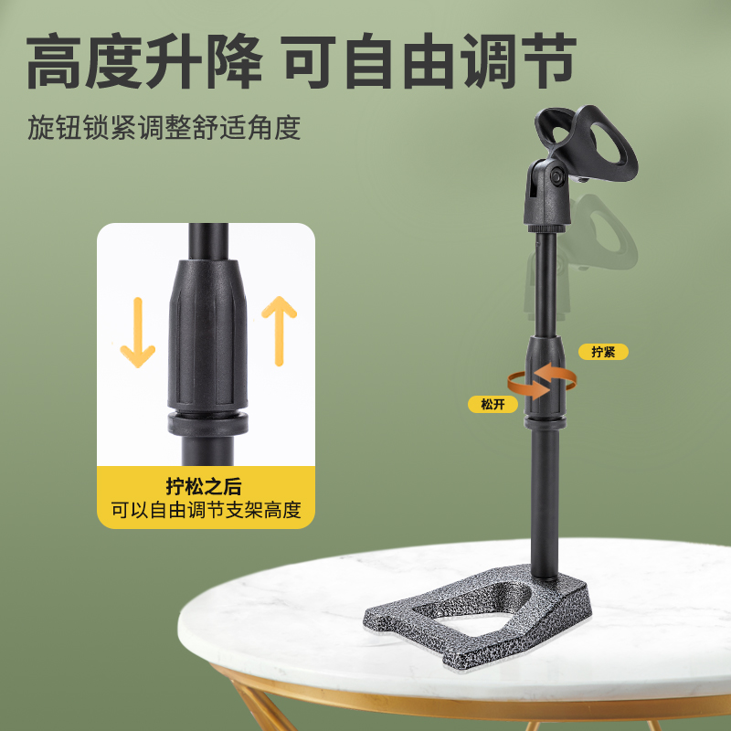 桌面话筒麦克风升降支架圆盘A字型金属实心加重可升降支撑架台式有线无线麦拍抖音快手主播直播会议全民K歌