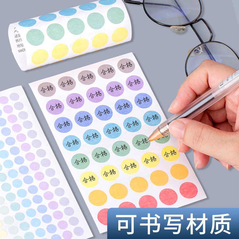 牛皮纸圆形不干胶贴纸自粘贴空白可手写字1厘米正方形大小号口取纸标签彩色波点即时贴相册diy莫兰迪装饰贴纸