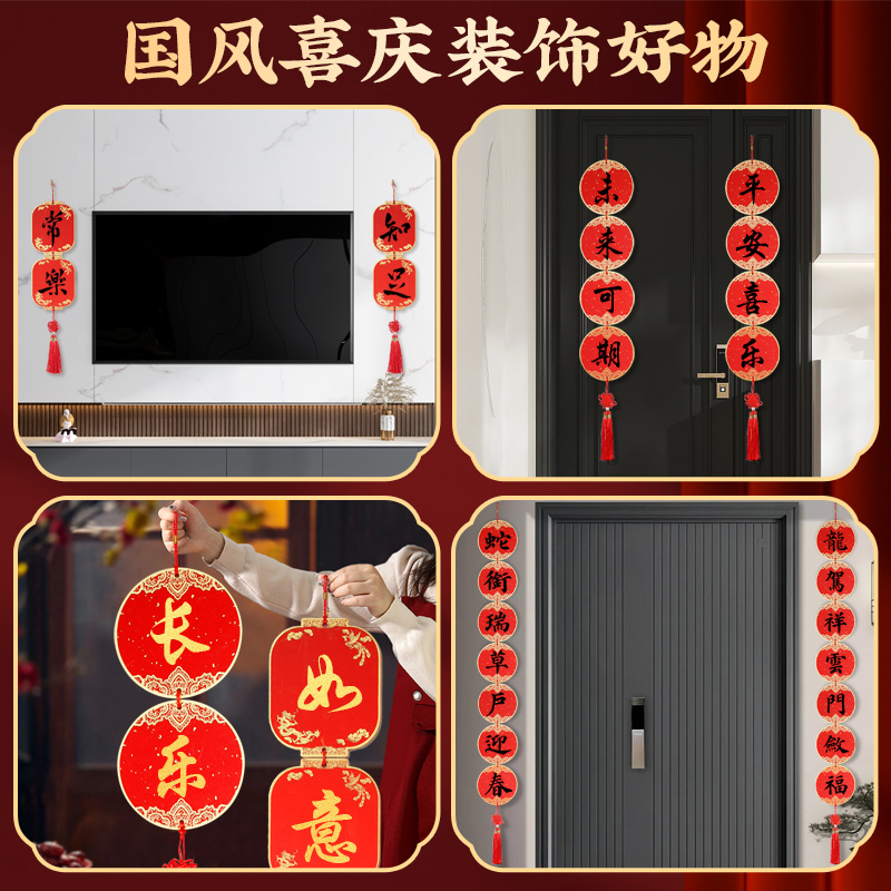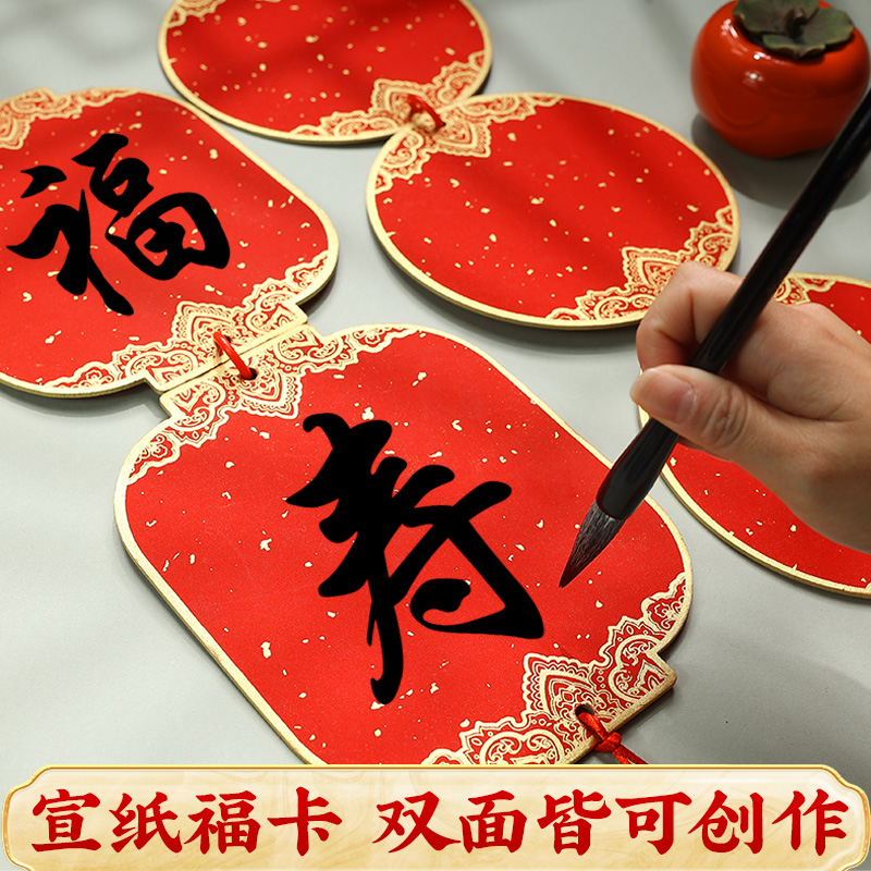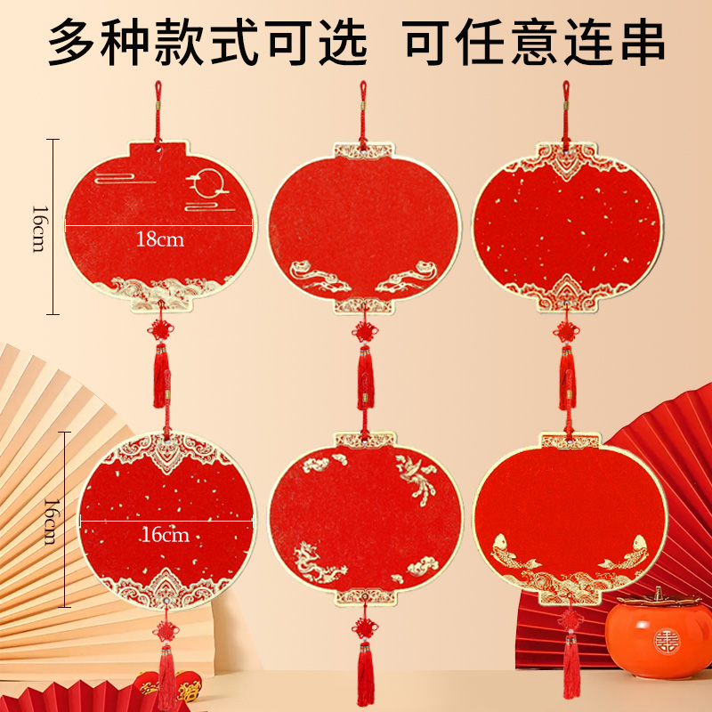 2025新款福卡万年红灯笼串二四五七言对联小挂件福字纸硬卡中国结挂饰手写宣纸红纸空白新年装饰自写吉语挥春