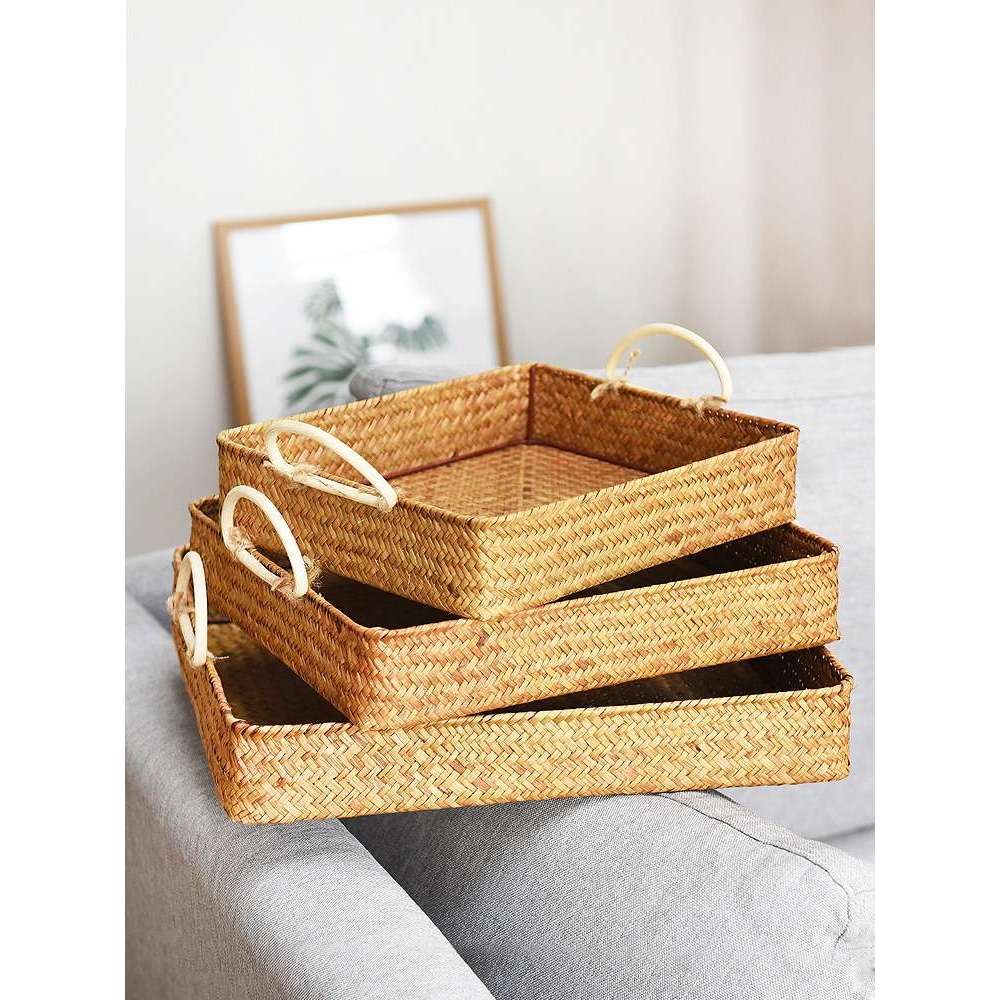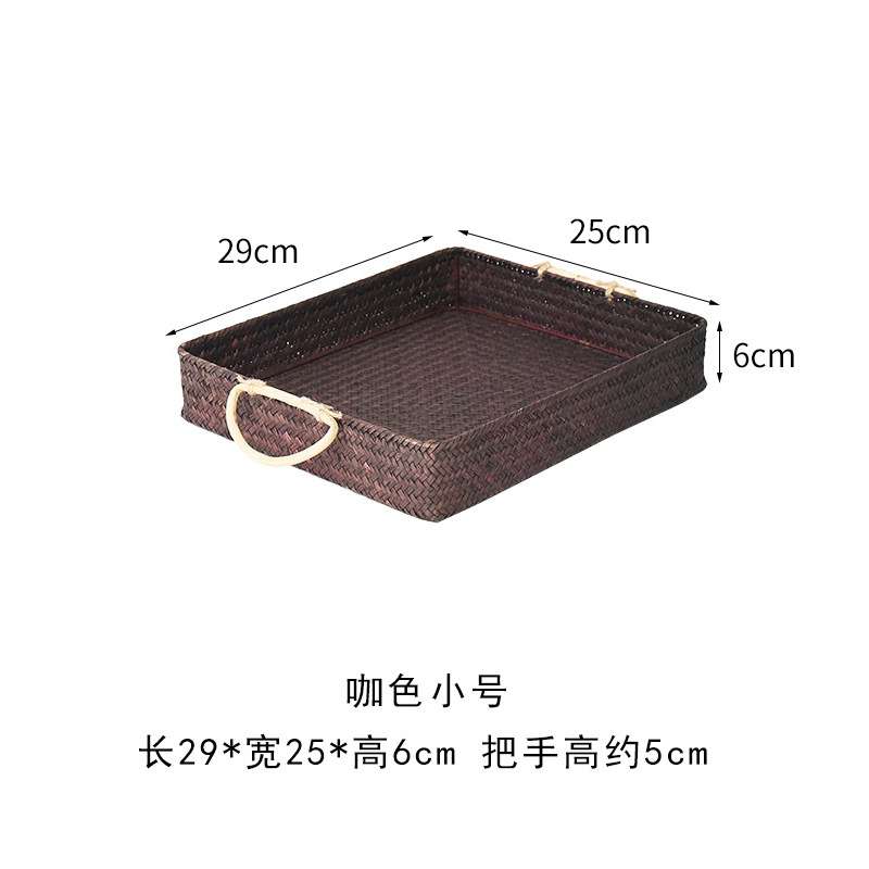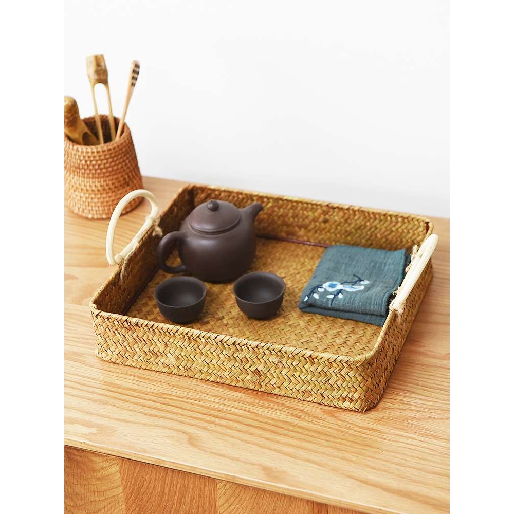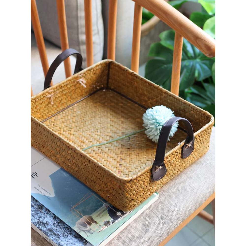 ?T9J5 海草编托盘收纳筐书筐收纳篮文艺整理篮藤编甜品盘茶盘