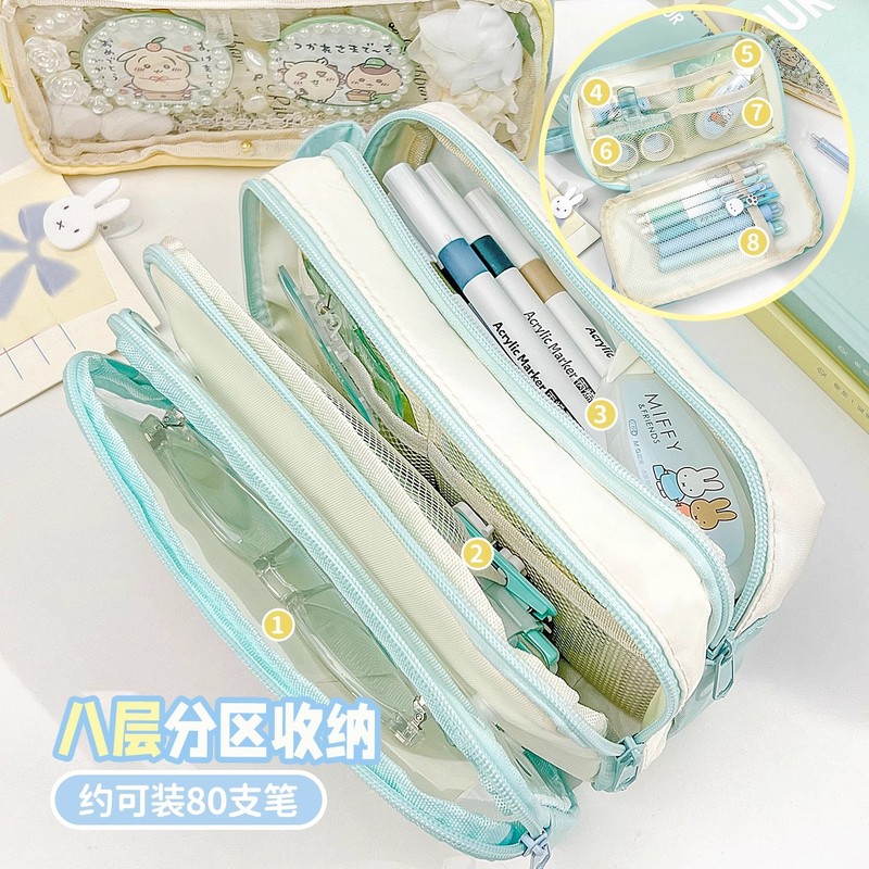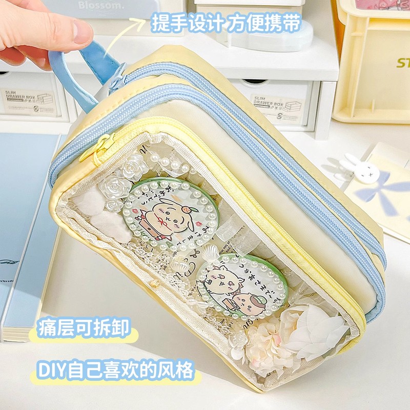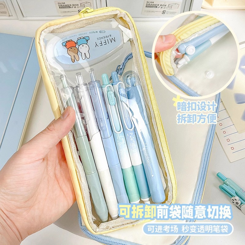 大容量多巴胺撞色可拆卸痛包透明笔袋初中用女孩ins日系高颜值女生小学生简约中学生文具盒铅笔盒多层文具袋