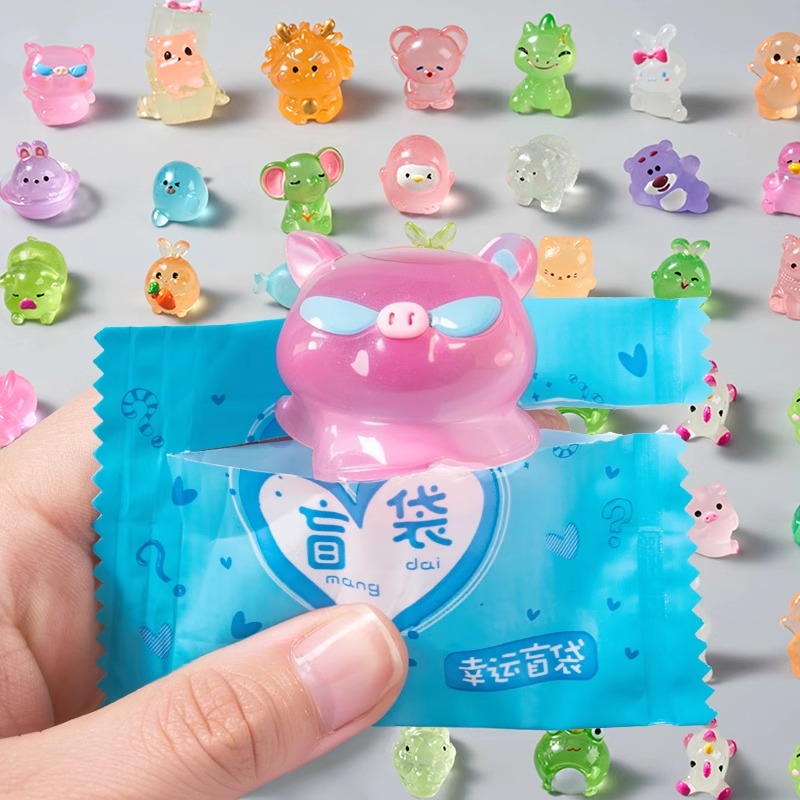 夜光立体卡通盲袋微缩小动物模型夜间发亮儿童玩具摆件网红小礼物