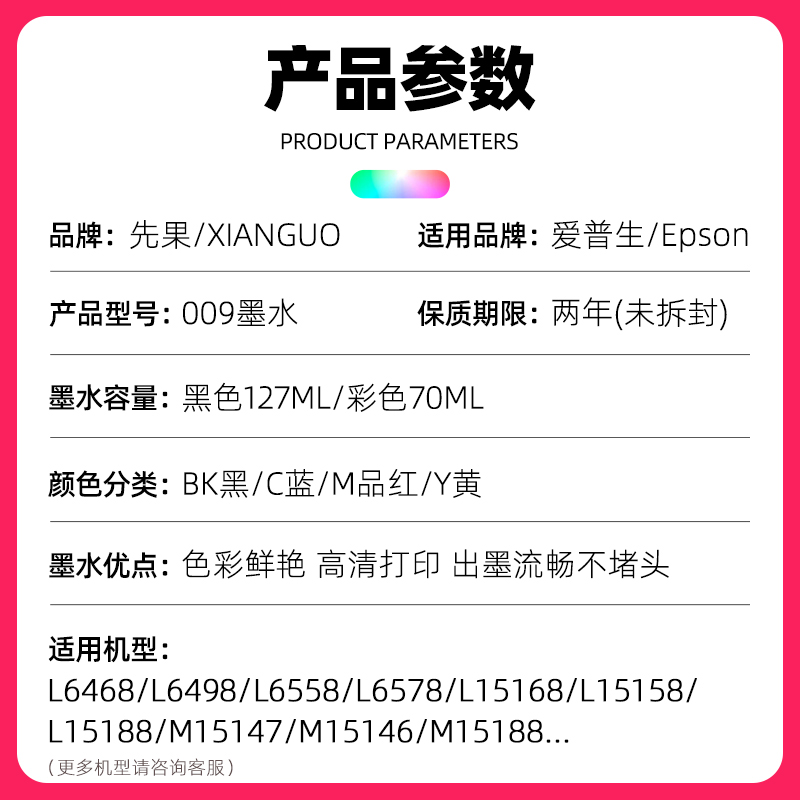 适用EPSON爱普生打印机009墨水L15158 L15168 L6558 L6578 6468 6498 M15147 M15146喷墨黑色彩色颜料补充墨