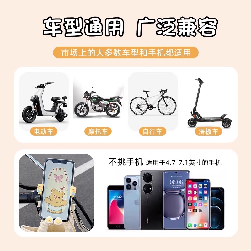 汇柏度电动车手机支架电瓶摩托车可爱防震导航架自行车外卖放手机神器通用人群防抖骑行固定电动车专用