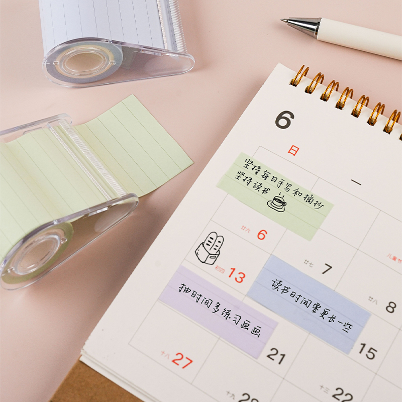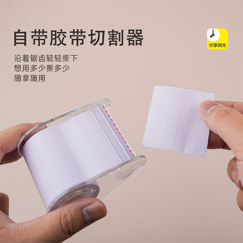 分享时光新品花香彩色卷型纸胶带自带切割器便签纸便利贴粘性便签本索引贴纯色马卡龙色高级素色横线n次贴