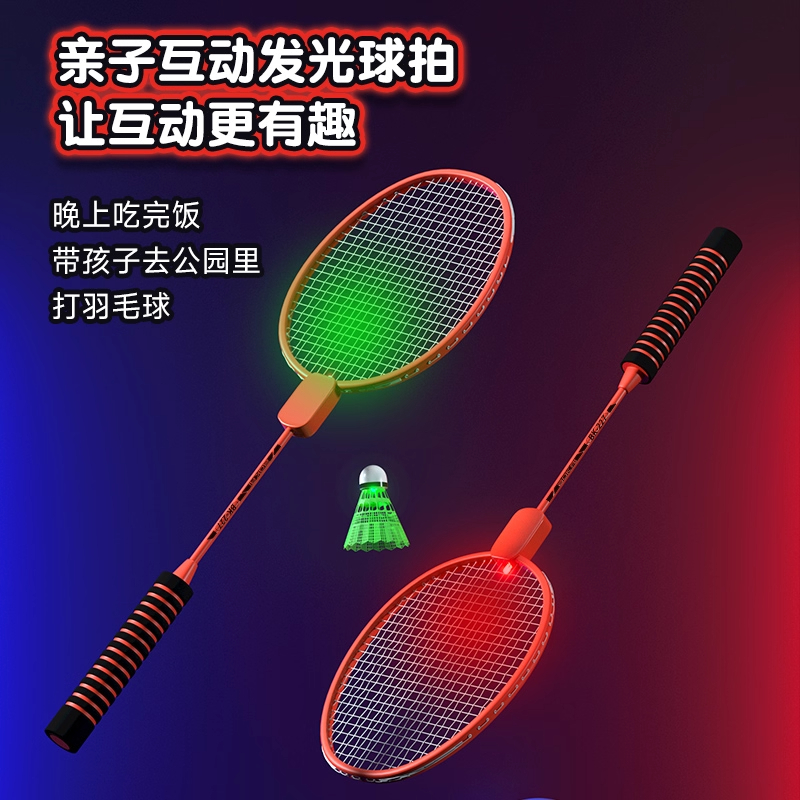 发光夜光羽毛球拍户外运动训练夜间成人儿童耐打双拍套装进攻型