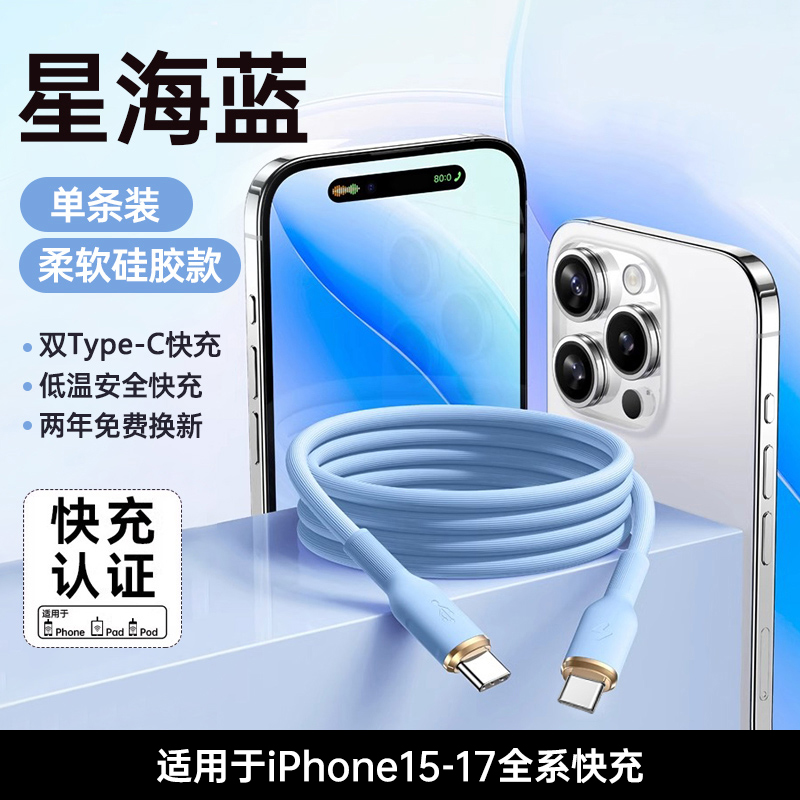 品胜适用苹果17充电线Air16ProMax充电器线iPhone15plus快充usb-c双typec数据线iPad平板ctoc手机笔记本正品