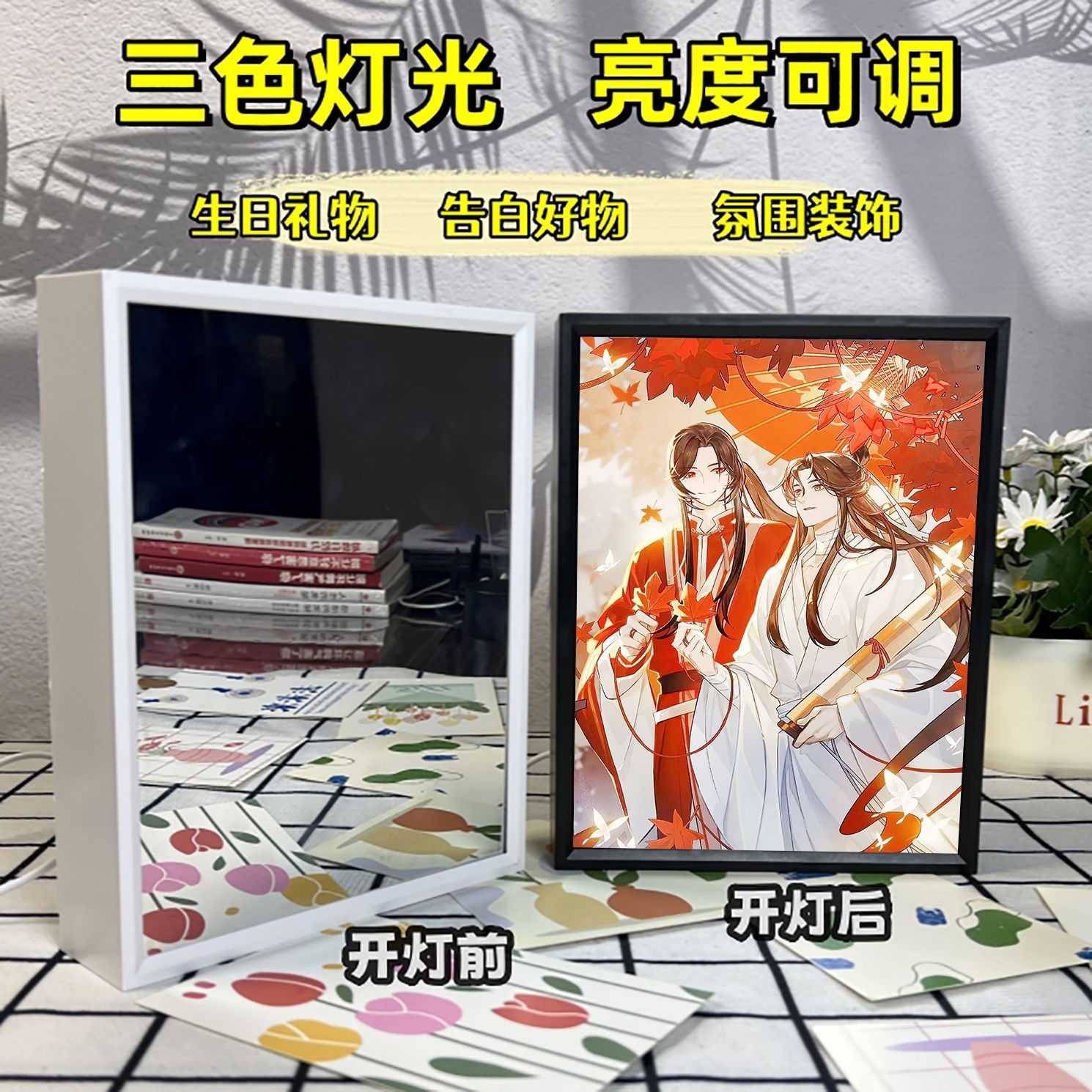 天官赐福镜子灯光画花城与谢怜装饰画礼物相框照片发光画摆件氛围