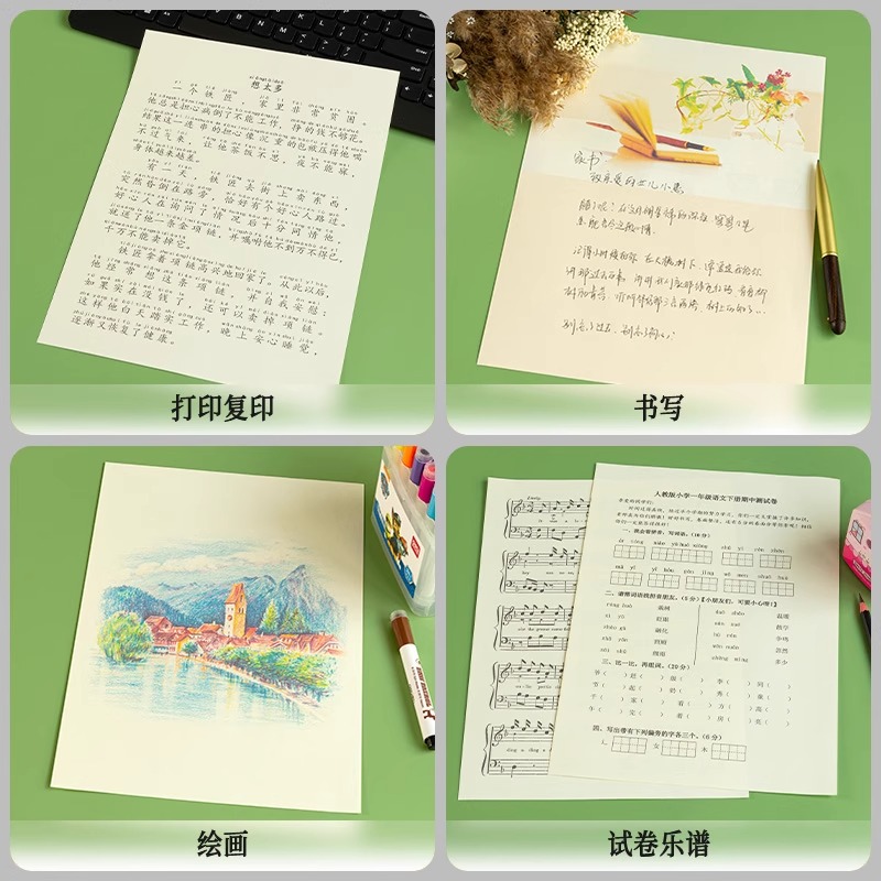 道林纸a4打印纸A3试卷纸120g道林纸打印资料纸复印纸微黄书刊纸印刷纸100张护眼纸双胶纸米黄书籍硬笔书法纸