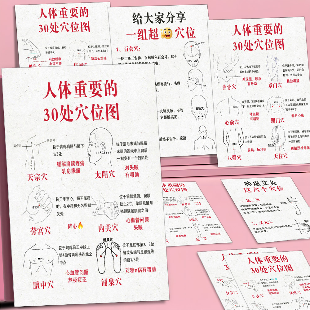 人体重要的30处穴位图】中医养生基础穴位大全异体质自测调理贴画