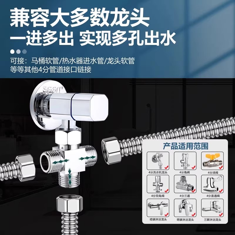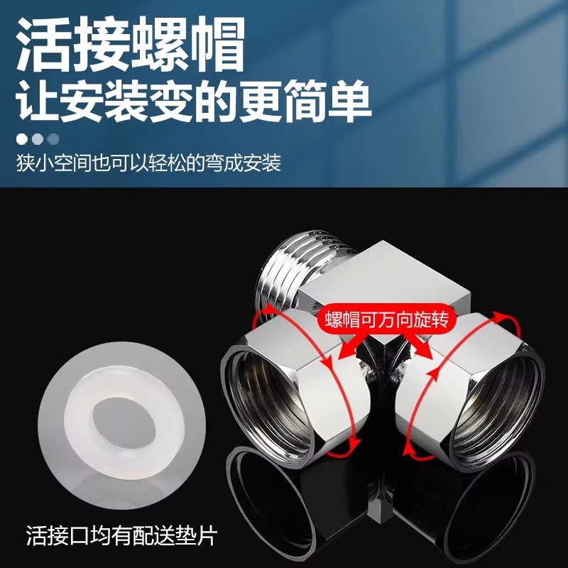 精铜活接三通接头分水器侧边转接头一分二4分龙头一进二出分流器