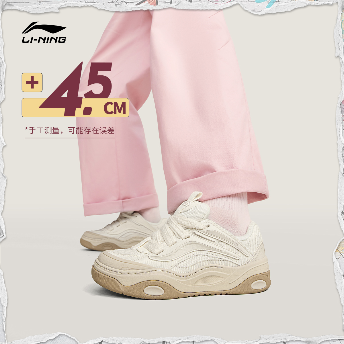 李宁小白鞋 |板鞋女鞋休闲鞋秋季轻便软底舒适百搭鞋子增高运动鞋