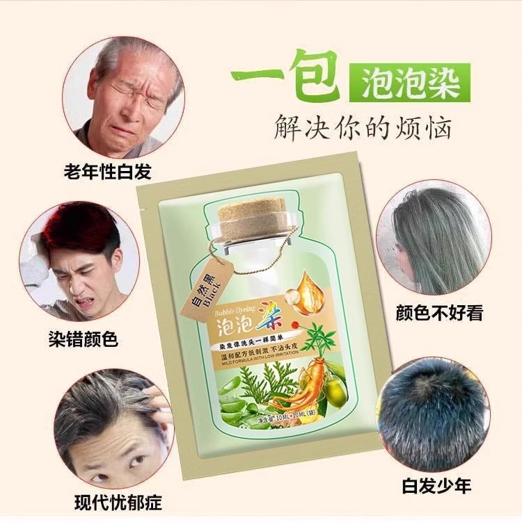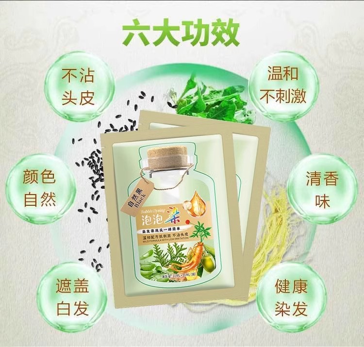 泡泡染发剂植物天然一洗黑遮白发自然黑纯自己在家染发膏袋装美发