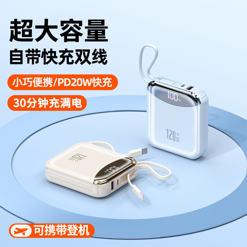 3C认证2025新款超级快充充电宝大容量20000毫安自带线超薄小巧便携迷你适用苹果华为手机专用官方正品旗舰店