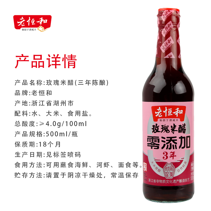 老恒和三年陈酿家用米醋500ml玫瑰食醋凉拌醋大闸蟹蟹醋