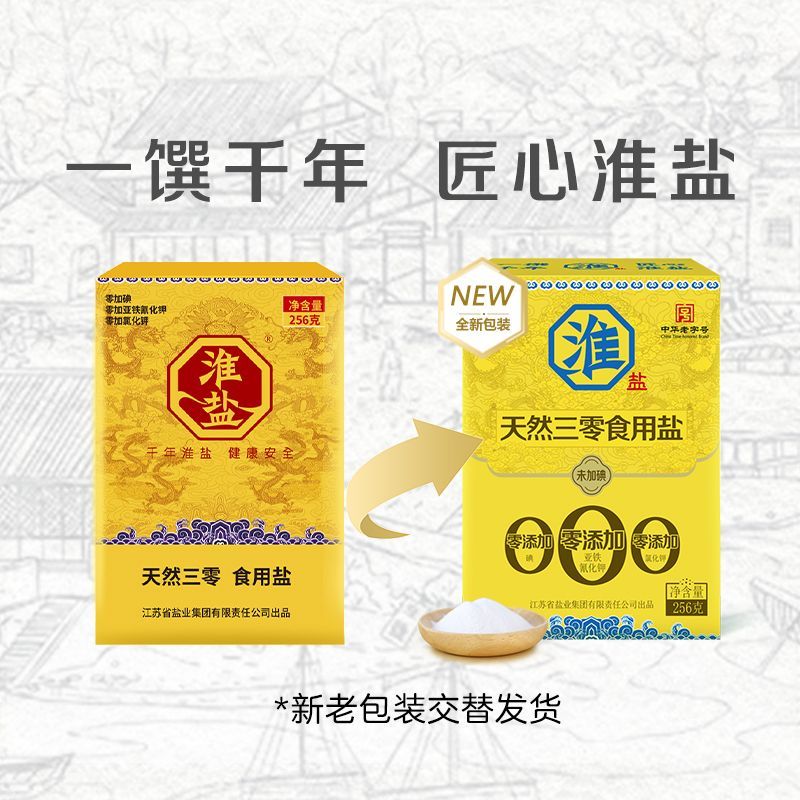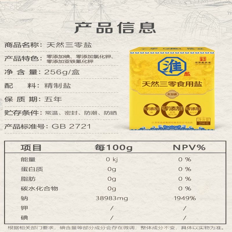 淮盐天然三零未加碘无碘食用盐家用无添加抗结剂不加碘海盐整箱