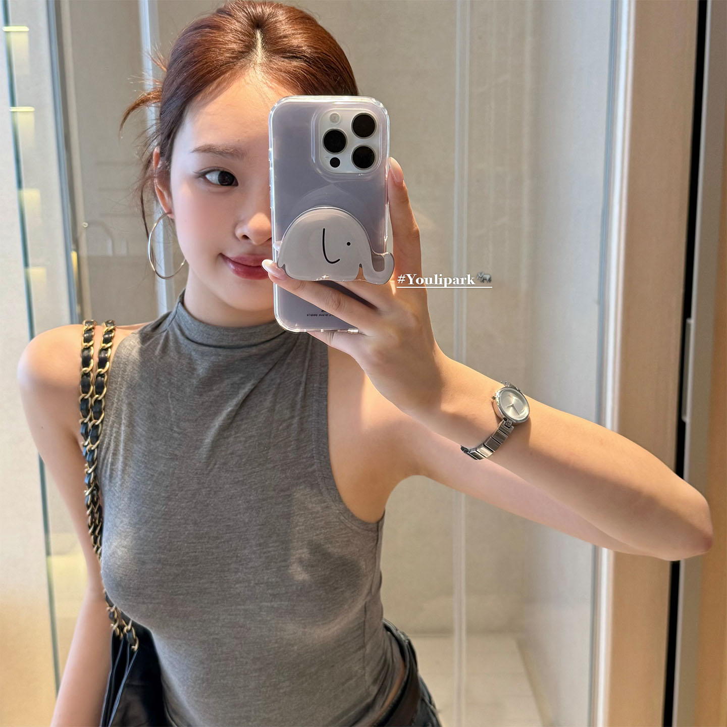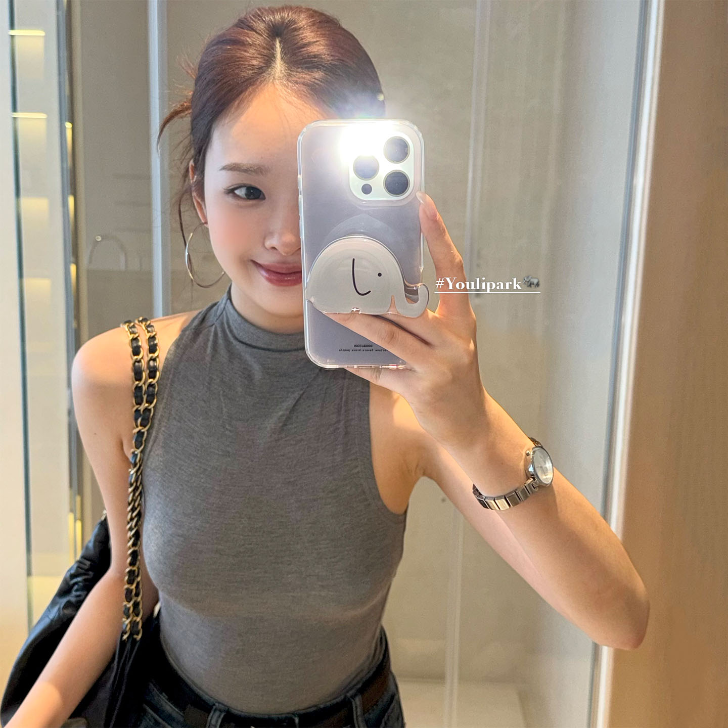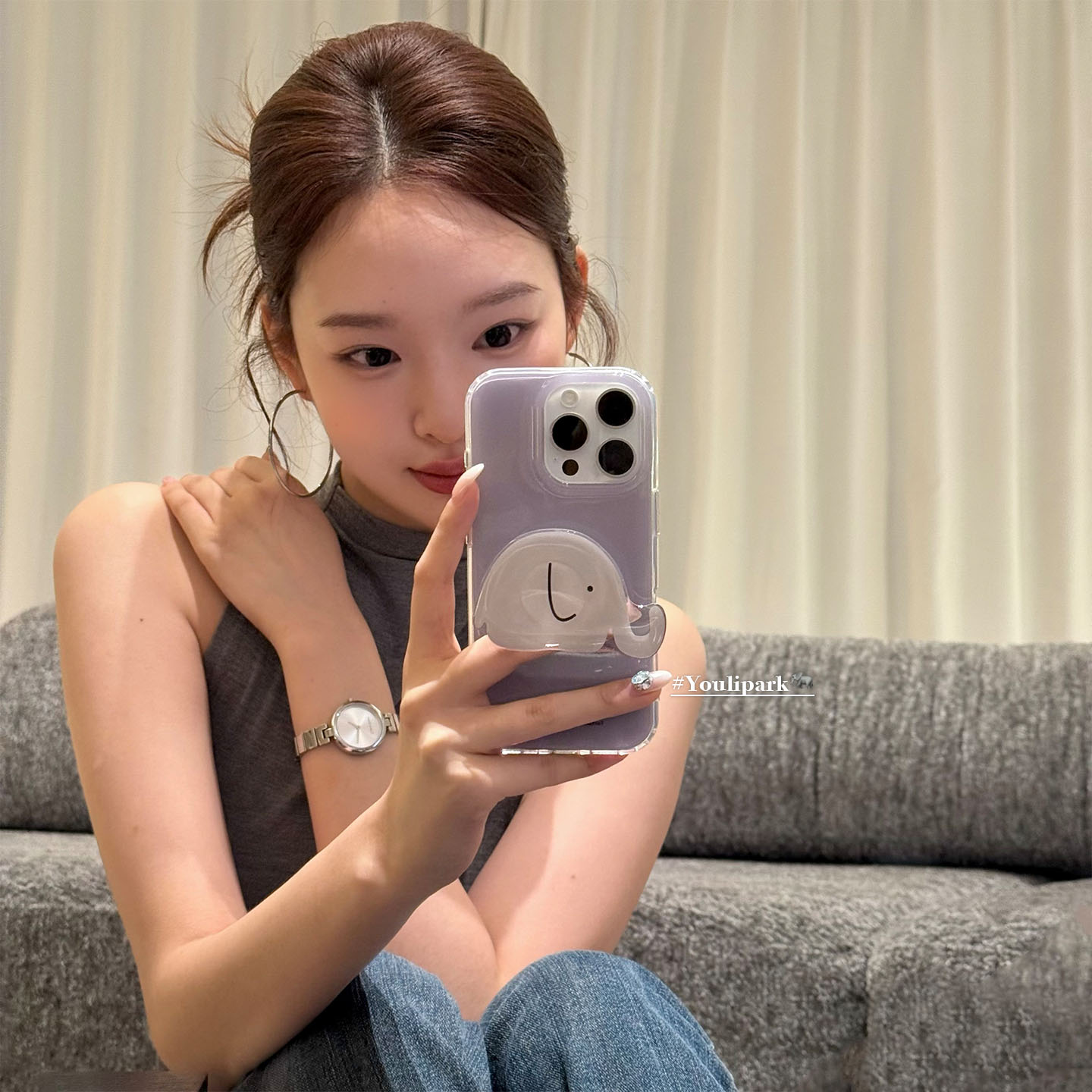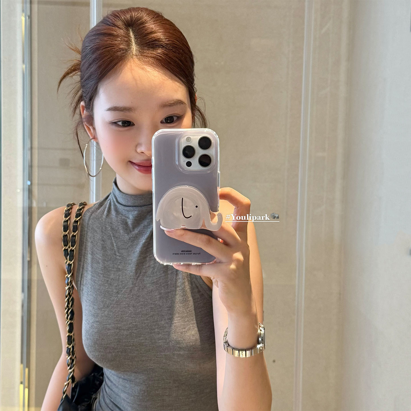 由里公园ins韩系软糯灰紫色可爱大象支架15适用17pro苹果17ProMax手机壳iPhone16全包17新款14Promax保护套女