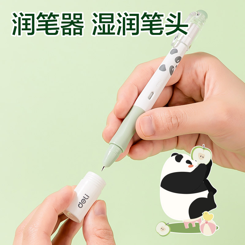 得力熊猫系列热可擦钢笔中小学生专用钢笔可替换墨囊晶蓝墨蓝儿童初学者0.5mmF暗尖黑色正姿写错即擦笔SF547