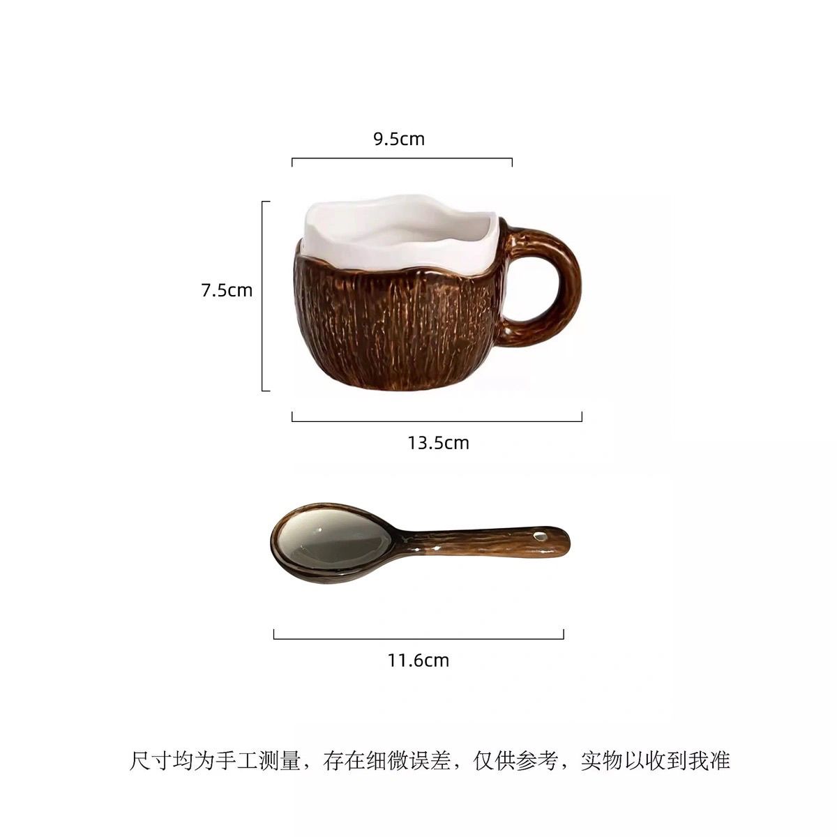 创意ins可爱椰子椰肉咖啡杯陶瓷牛奶家用早餐马克杯釉下彩陶瓷杯