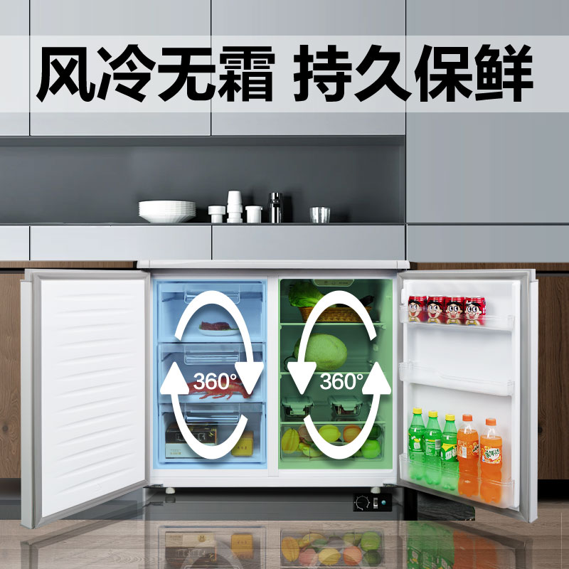 荣事达226升对开双门台下嵌入卧式冰箱家用小型风冷无霜矮冰箱