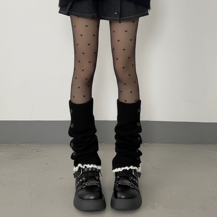美拉德花边堆堆袜套辣妹y2k腿袜百搭纽扣纯色显瘦秋冬棕色腿套ins