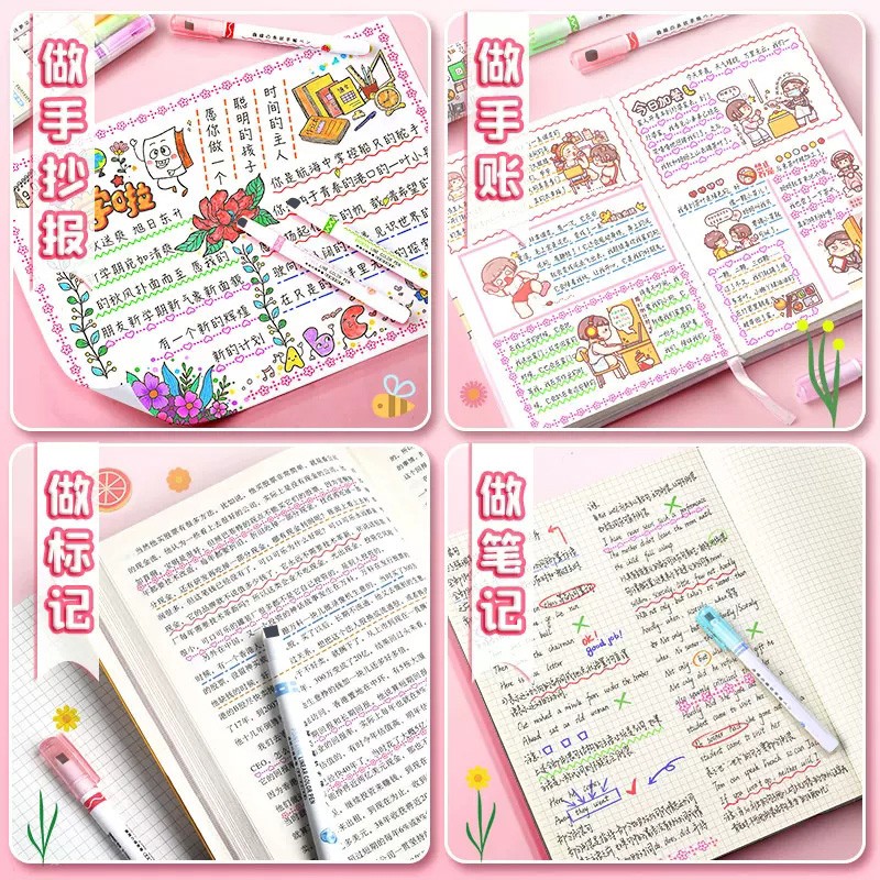 三年二班护眼荧光笔高颜值荧光标记笔学生用多色记号笔彩色划重点手帐手账笔做笔记本马卡龙淡色萤光笔银光笔