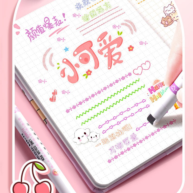 花型轮廓笔学生彩色波浪专用记号笔儿童花型花边曲线型花色笔荧光儿童记号手抄报印花线条手账滚轮线型笔