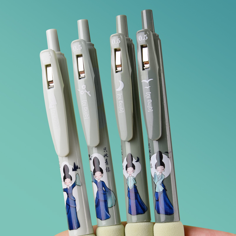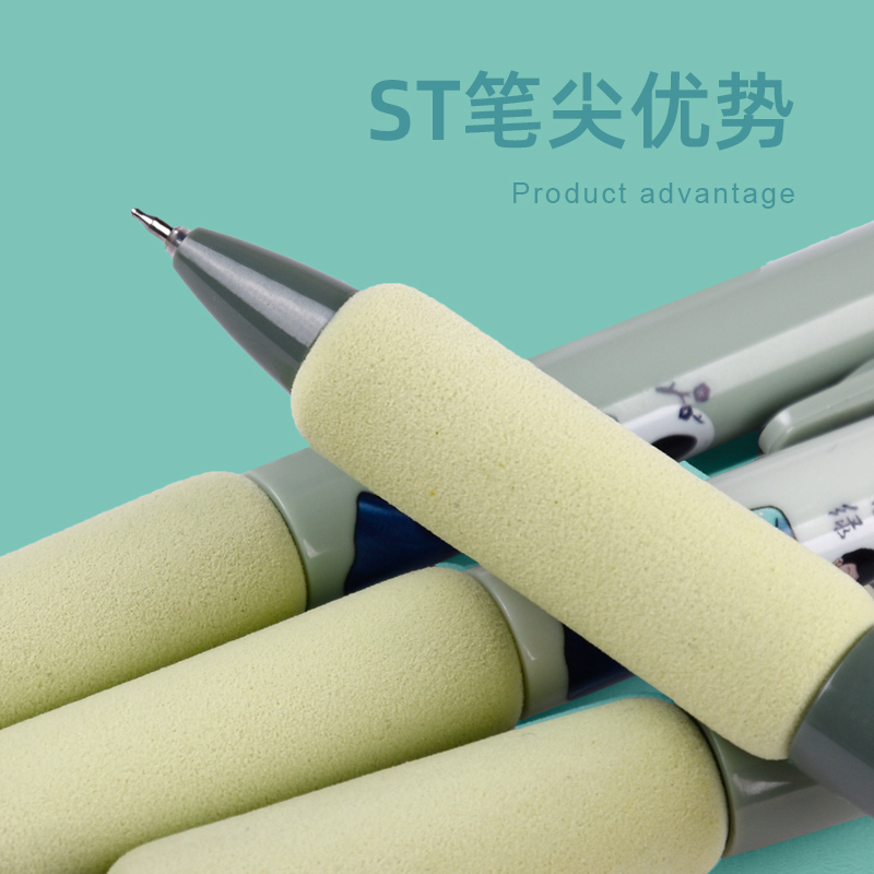 金万年欧包笔海绵软握国风按动中性笔只此青绿st笔头0.5黑笔速干刷题用高颜值水笔
