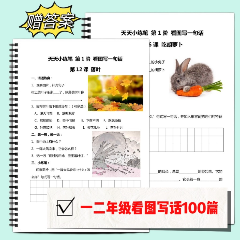 天天小练笔看图写话100篇小学一二年级作文专项训练仿写练习有答案句法词语句子一句话