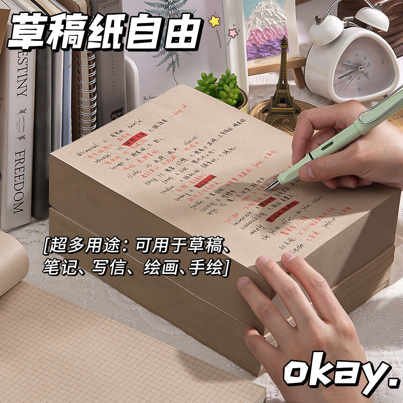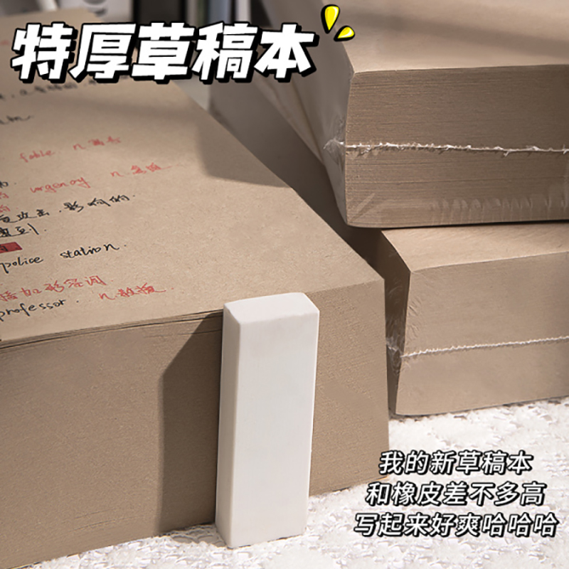 小红薯小方砖原木草稿本B5巨厚空白横线方格点阵分区笔记本可撕草稿纸批发考研高中生刷题记事