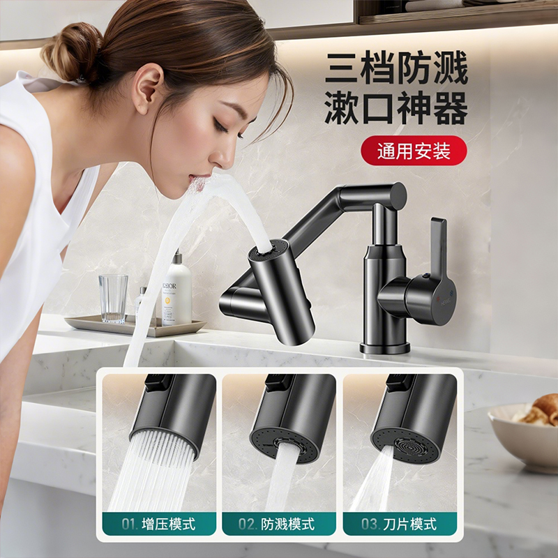 全铜卫生间洗脸盆水龙头单冷万向旋转面盆洗漱台洗手盆浴室柜台盆
