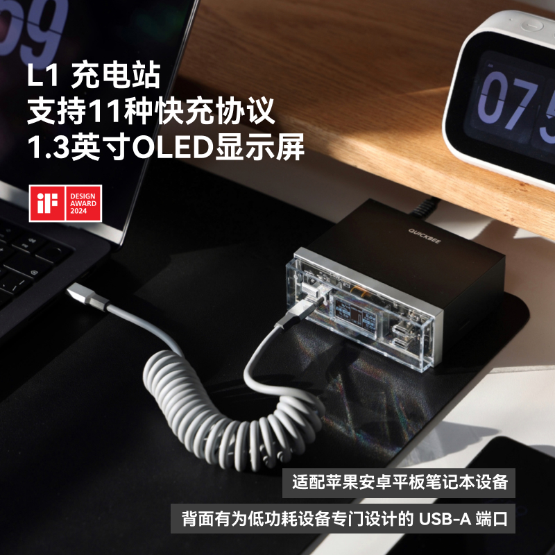 TEGIC 桌面充电站 多口不断冲 210W功率屏显氮化镓充电坞 多功能type-c充电器桌搭超级电容快充排插 特极客