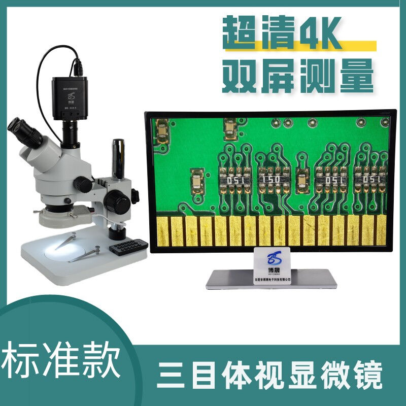 博晟超清4K立臂三目体视电子显微镜数位相机7-45X连续变倍测