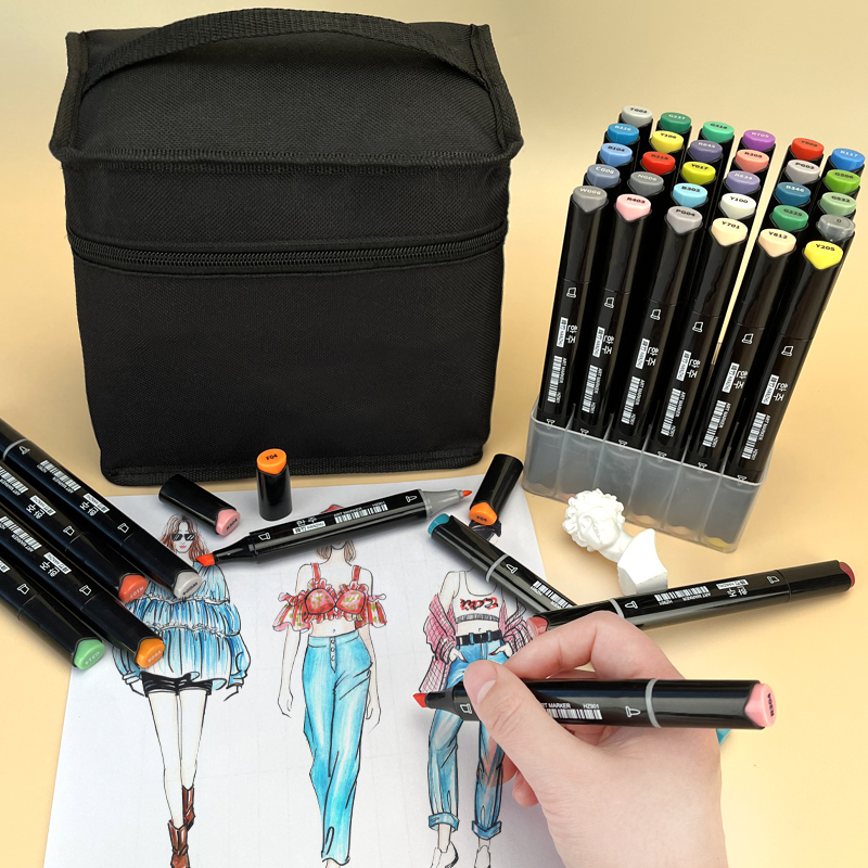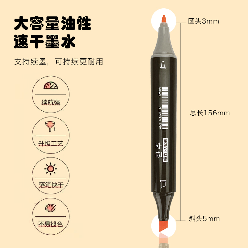 韩竹马克笔套装120色HANZHU手绘动漫美术生专用套装双头设计初学者工具酒精油性48色72色36色全套学生用