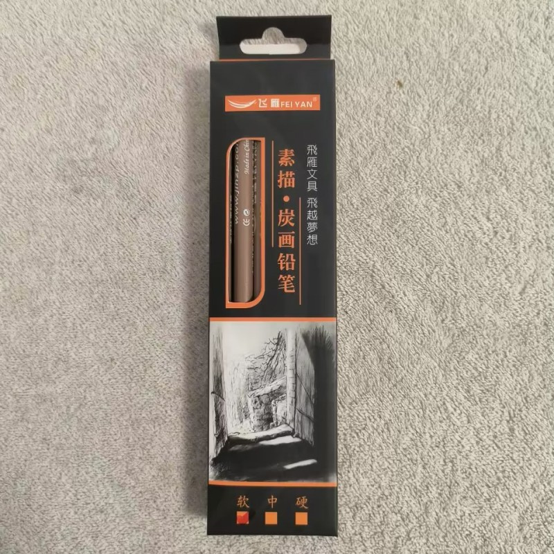 48支圆木杆素描笔美术生绘画碳黑无铅小学生炭画铅笔素描