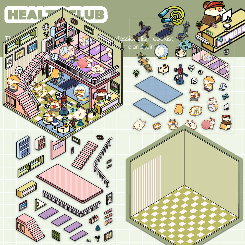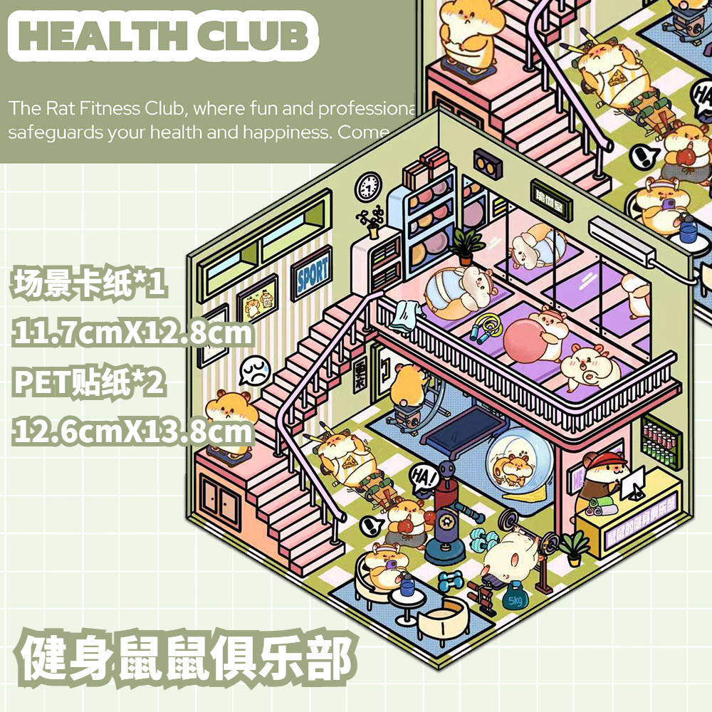 造景微缩场景健身鼠鼠俱乐部贴纸可爱卡通立体解压手工益智合集贴