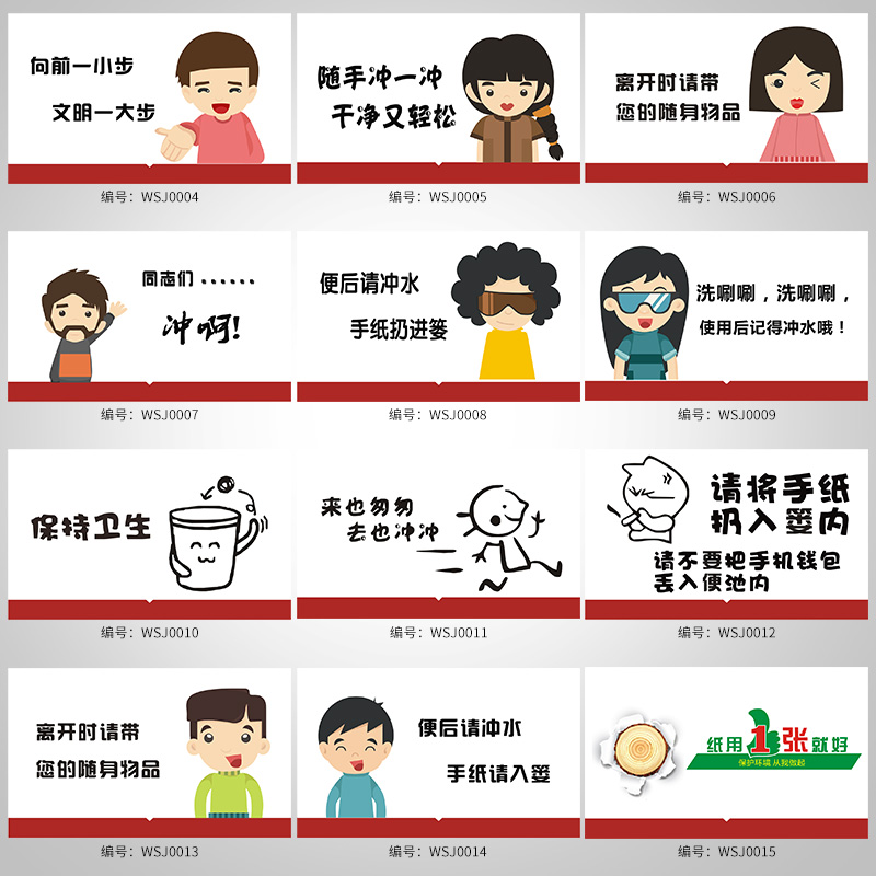 洗手间标识卡通创意个性标识牌厕所卫生间向前一小步文明一大步来也匆匆去也冲冲标识指示牌亚克力定制标语贴