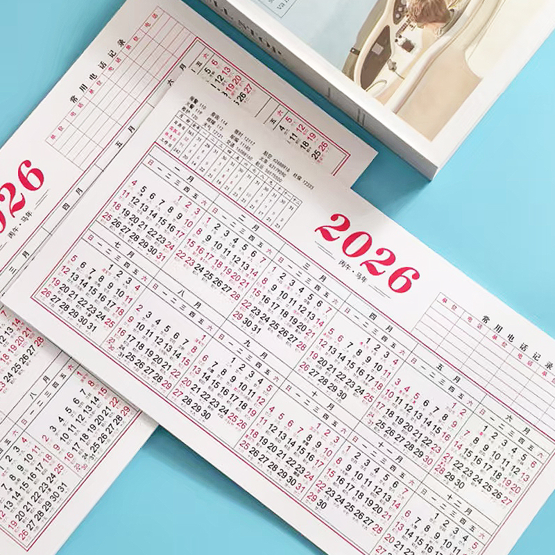 2026年新款日历台历挂历纸一张年历计划表桌面年历新年月历纸全年单页单张日程年历表一年一页日历纸365天