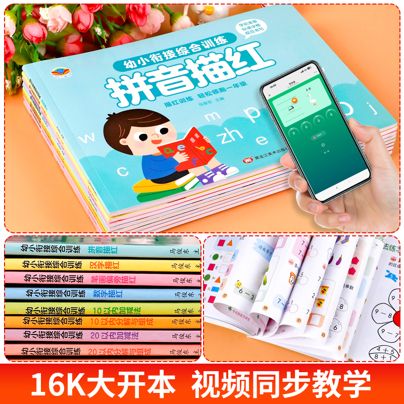 幼小衔接教材全套拼音数学识字优选测试卷学前班幼儿园升一年级入学早准备练习题幼儿中大班练习册每日一练幼升小衔接上册教材全套