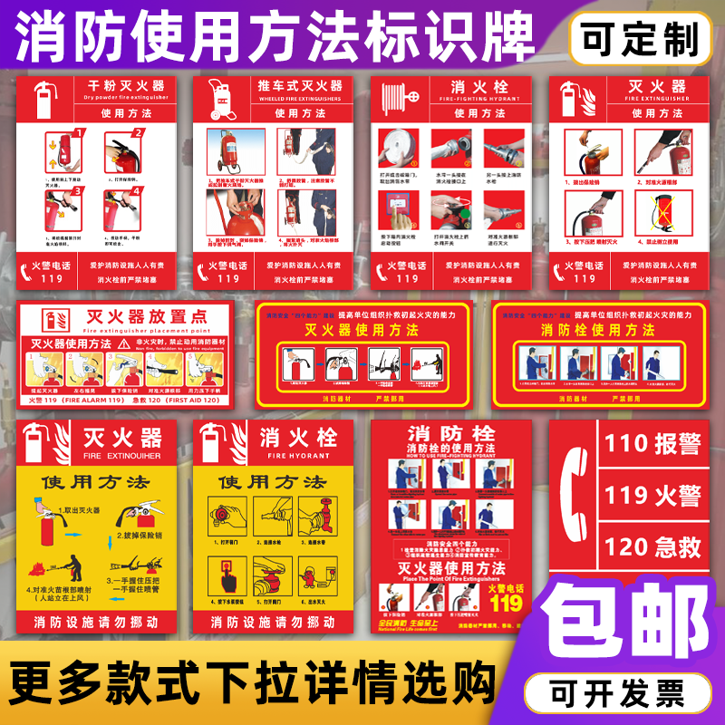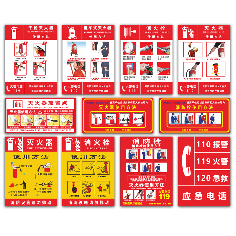 灭火器使用方法PVC塑料牌消防栓消火栓使用说明贴纸安全警示牌